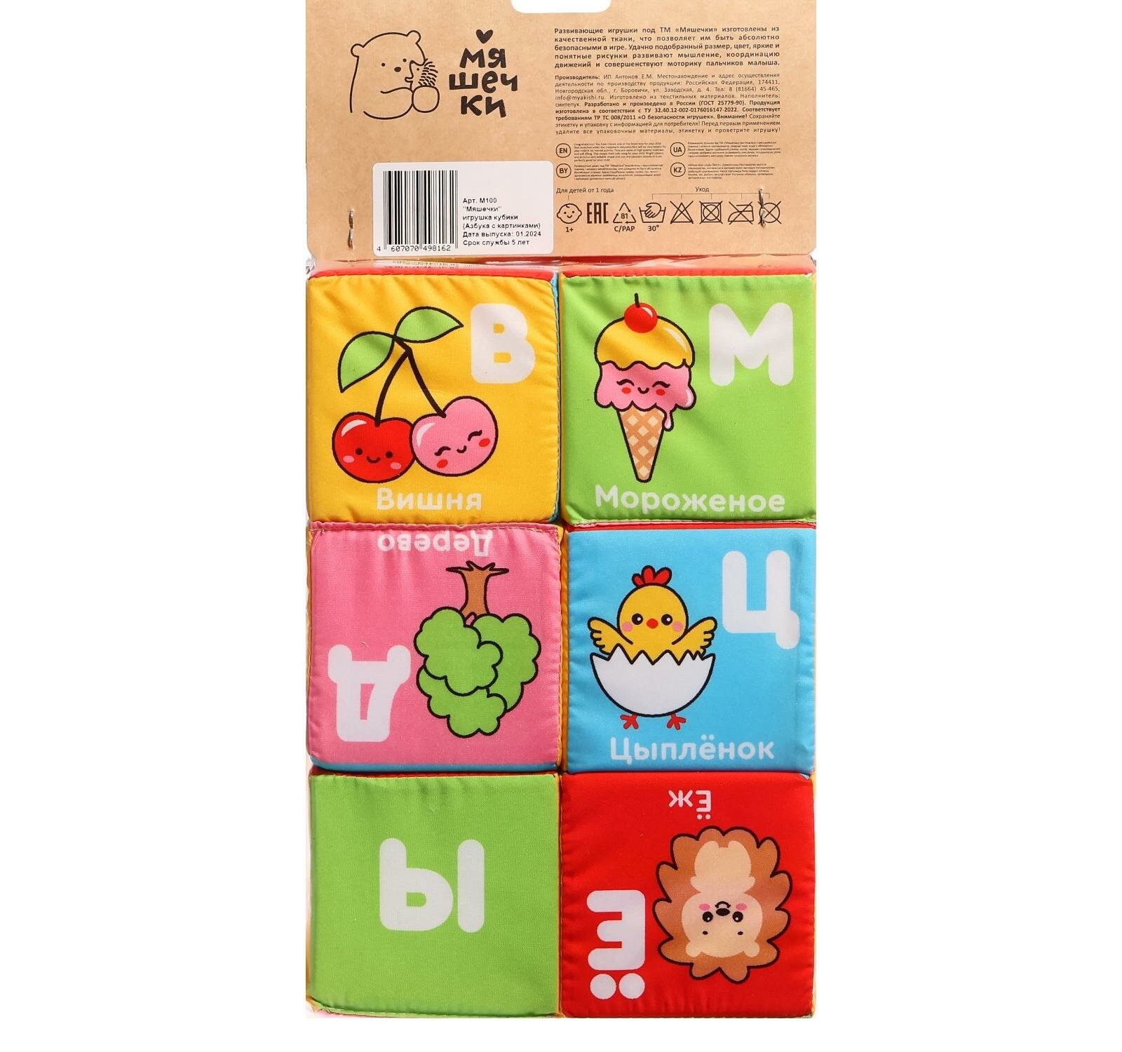 Купить Мягкая игрушка кубики Азбука с картинками - Мяшечки