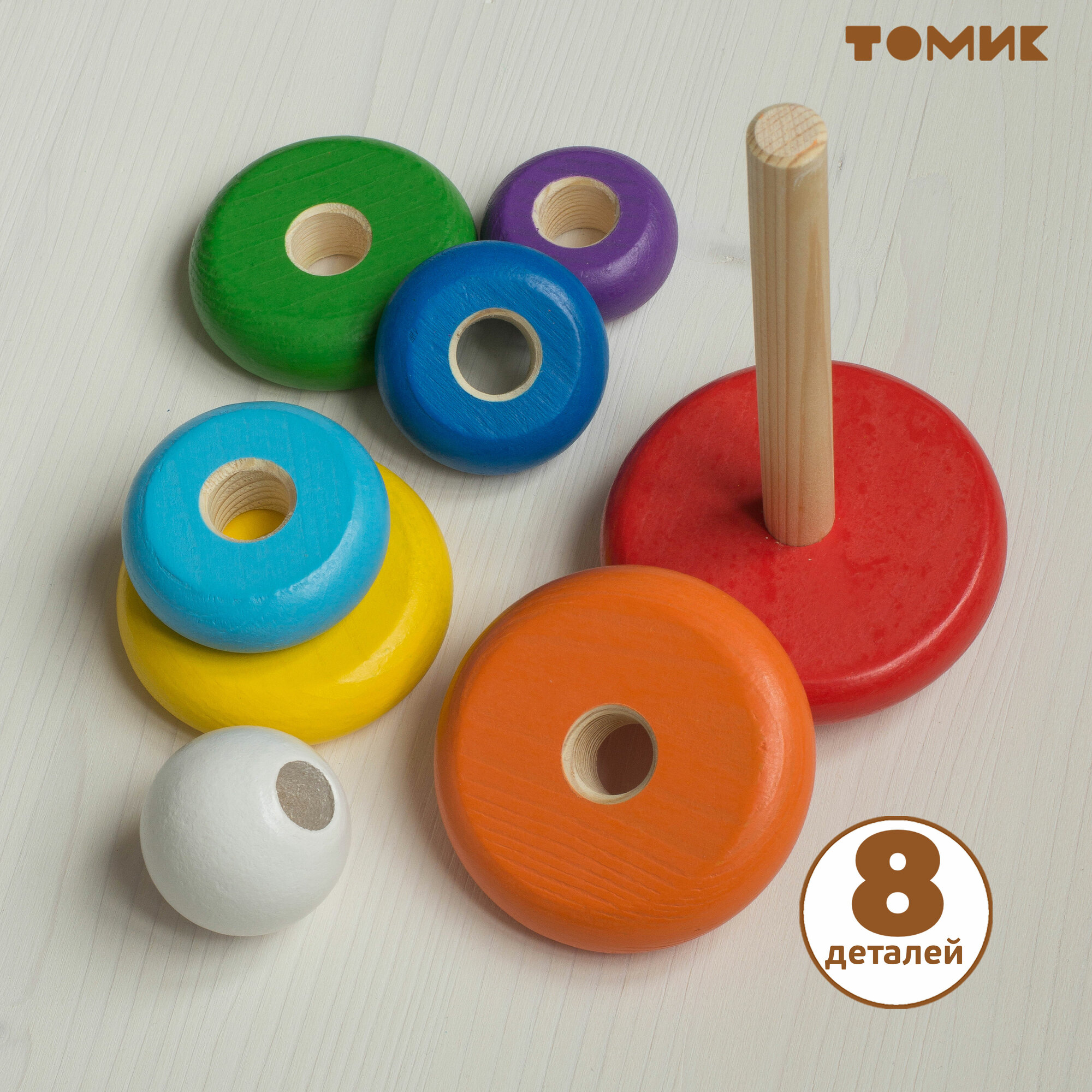 Томик Пирамидка 8 дет. Радуга (дерево, от 3 лет) П-08, (ООО "Томь-Сервис")