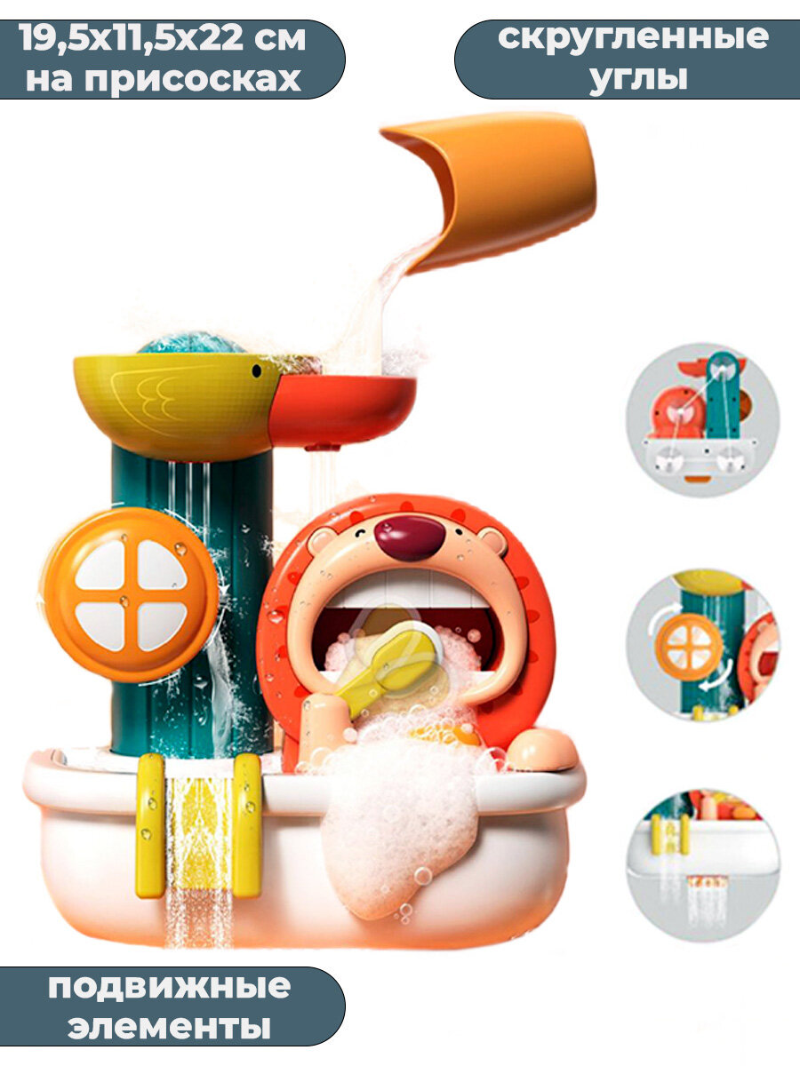 Игрушка для купания в ванной водопад с животными на присосках мыльные пузыри 19,5х11,5х22 см интересное: