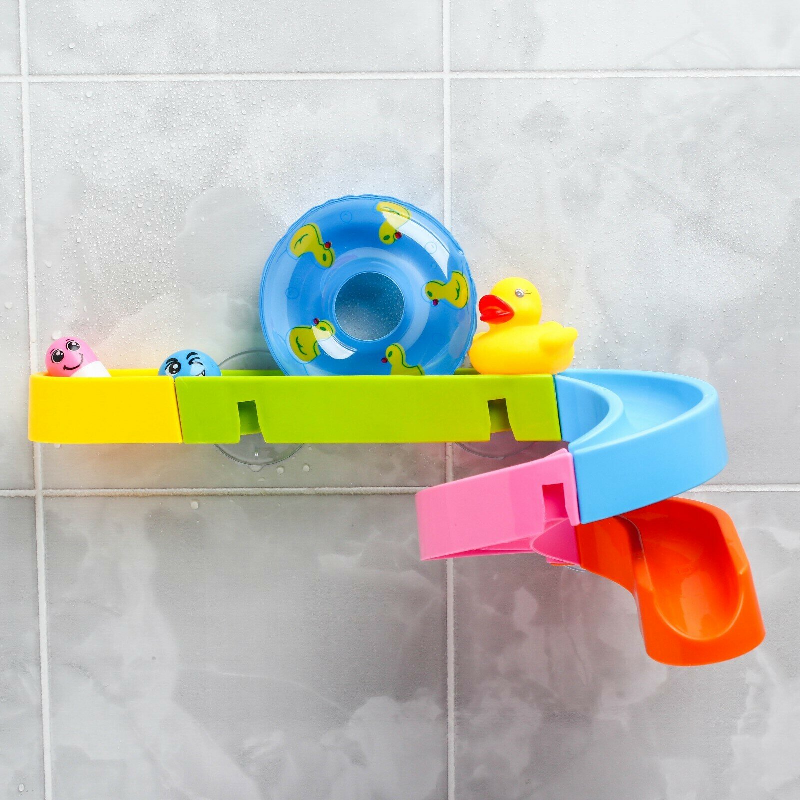 Игрушка водная горка для игры в ванной, конструктор, набор на присосках «Утиный аквапарк»