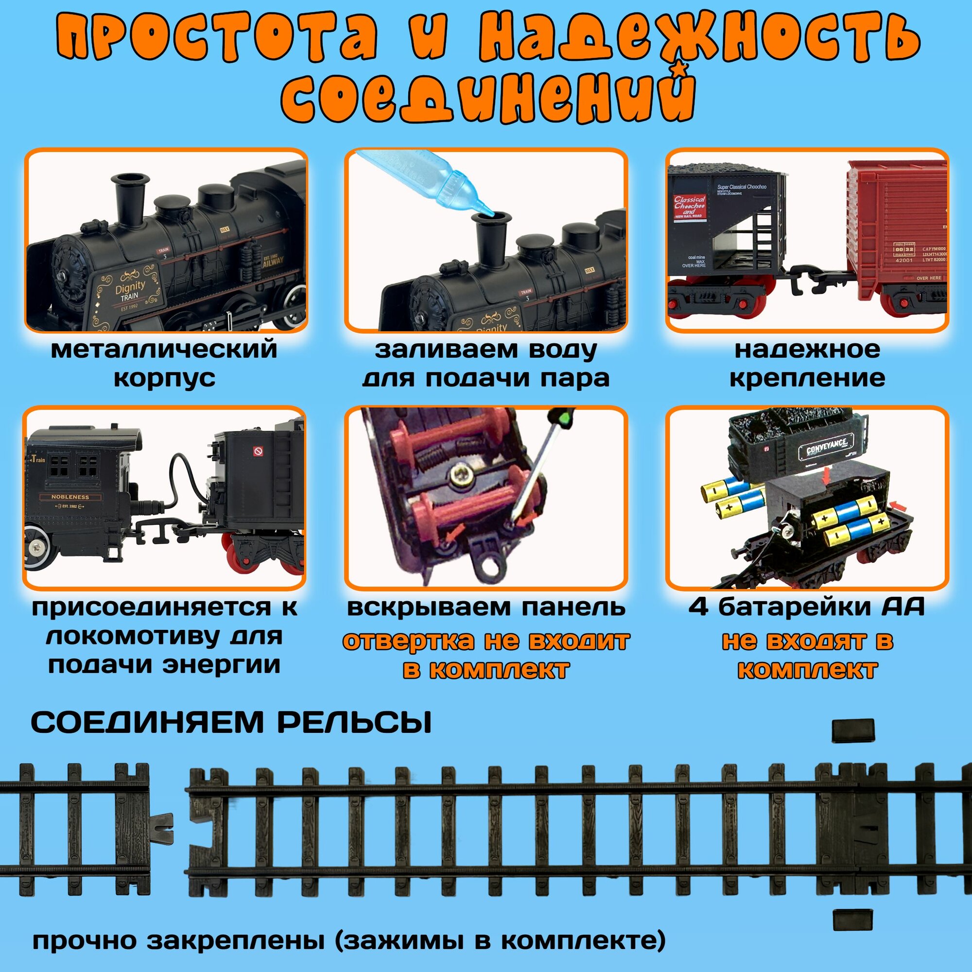 Ниже Вы можете прочитать отзывы на Детская железная дорога с поездом Rail King, 16 элементов, размер дороги 103х78 см, металлический поезд, 3 вагона, дым, светящийся прожектор, ознакомится с подробными характеристиками, посмотреть интересные обзоры и фотографии на Детская железная дорога с поездом Rail King, 16 элементов, размер дороги 103х78 см, металлический поезд, 3 вагона, дым, светящийся прожектор.
