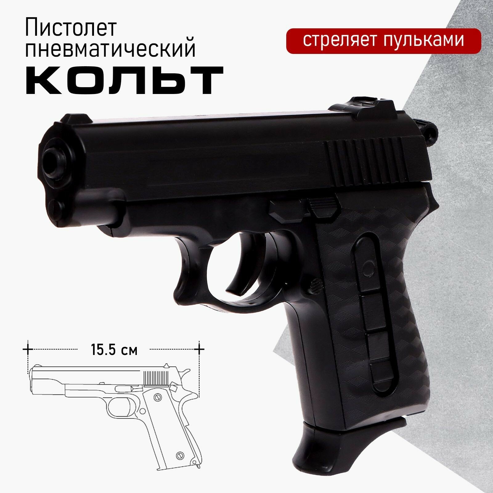 Купить Детское оружие пистолет пневматический "Кольт", стреляет пулями 6 мм, дальность 8 м, ЛАС играс