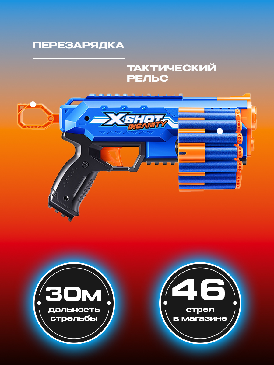 Бластер пистолет Zuru Бластер X-Shot INSANITY MANIC Синий 68 см / зуру