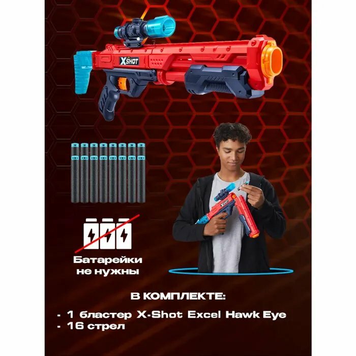 Бластер XShot Excel Hawk Eye 16 стрел в комплекте Zuru 36435