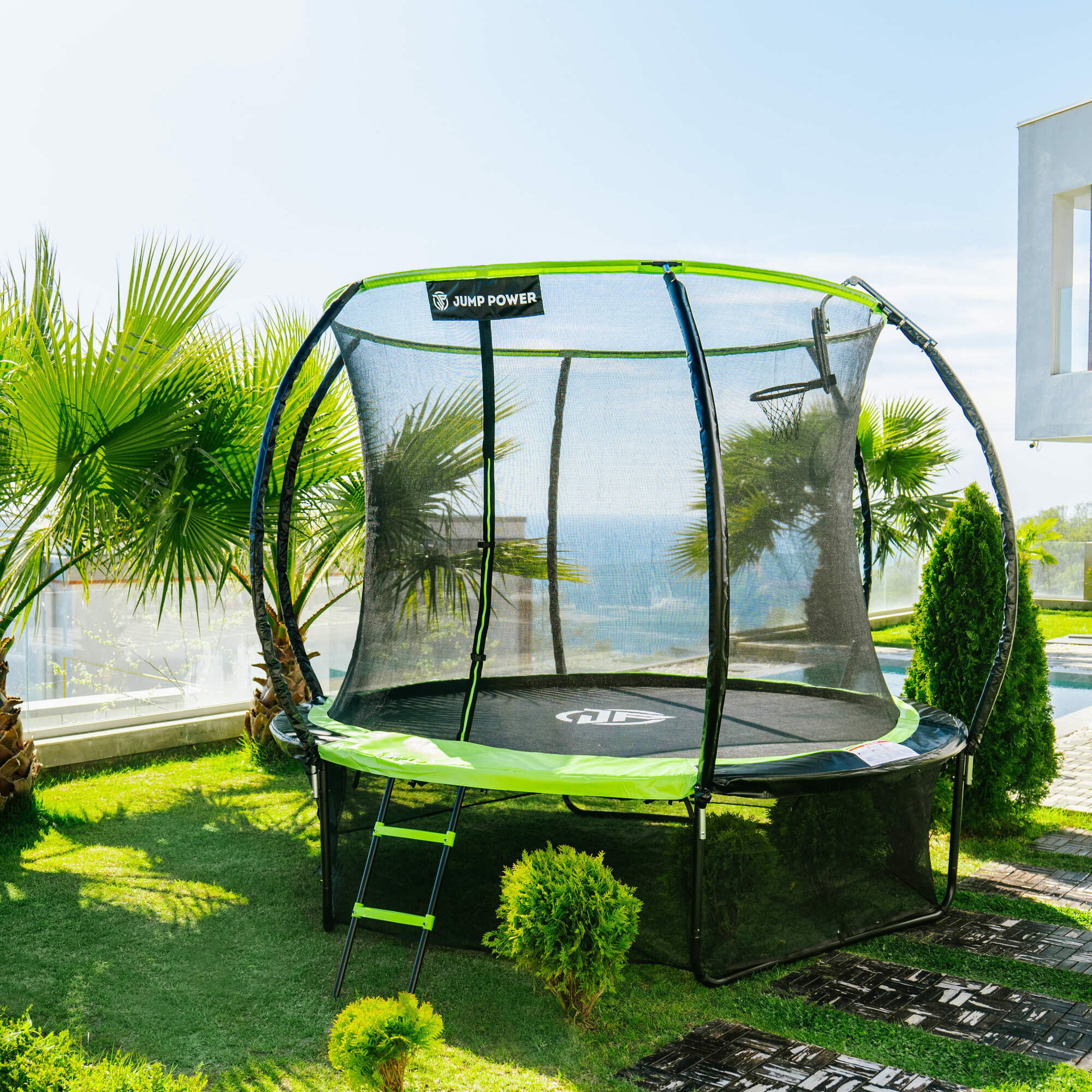 Детский каркасный батут Jump Power Stable Point для улицы с защитной сеткой и лестницей, 8 футов