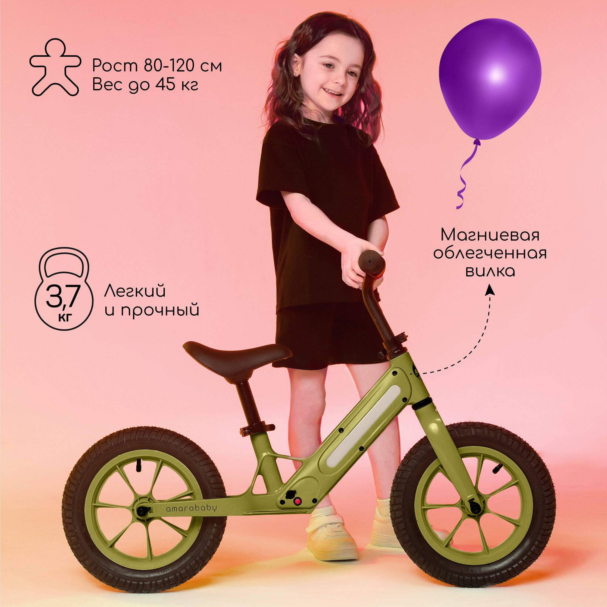 СохранитьДетский двухколесный беговел Amarobaby Tune, с подсветкой и музыкой по Bluetooth, хаки интересное: