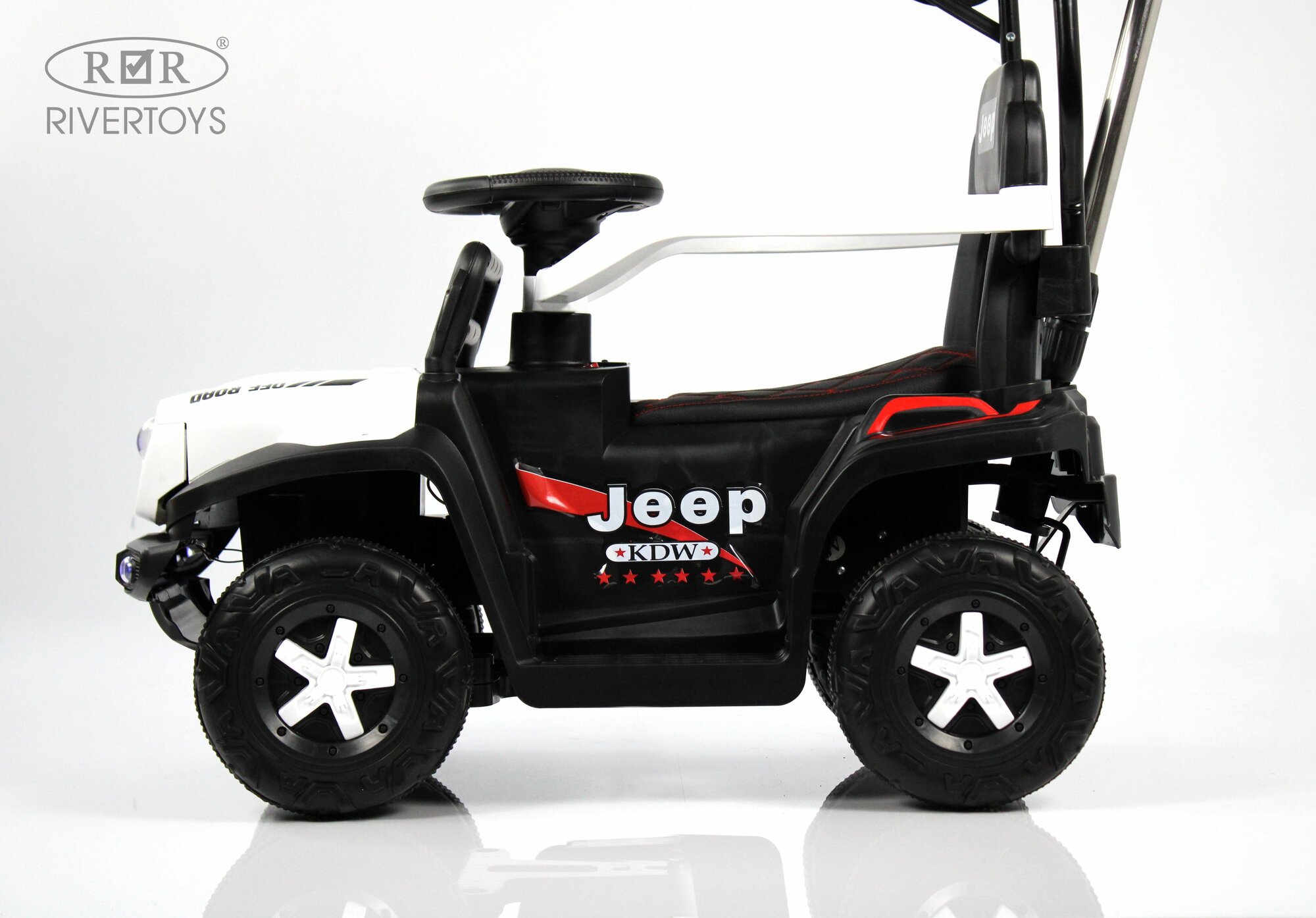 | Дополнительная информация | Световые эффекты: передние огни фар. Звуковые эффекты: заводские мелодии, звук клаксона. Пульт управления: индивидуальный (настраивается по Bluetooth), от батареек 2 шт 1.5v AAА Доп.функции: откидная крыша, фиксирующаяся в двух положениях, боковые фиксирующие ручки. Колеса: каучуковые. Скорость: вперед/назад+ управление родительской ручкой. Сидение: эко-кожа. Включение: кнопка. Движение: педаль газа. Медиа-панель: USB-вход, AUX-вход, индикатор заряда батареи. |