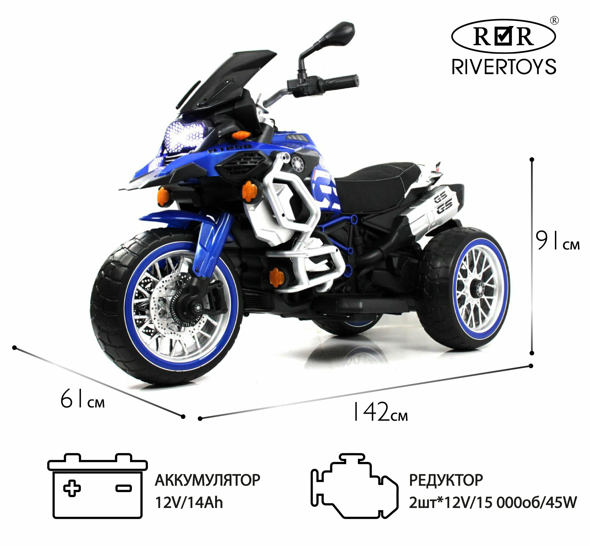 RiverToys Детский электромотоцикл М111БХ синий