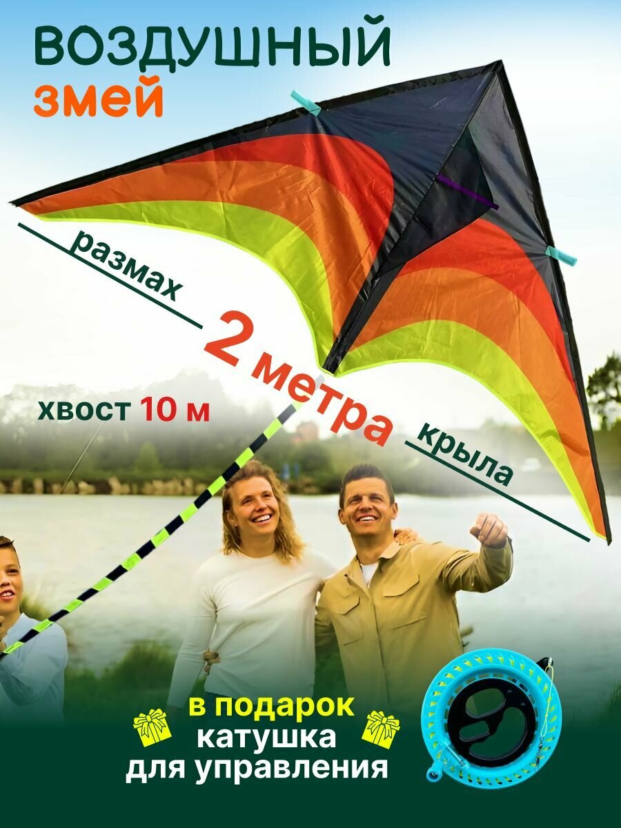 Воздушный змей 2 метра, катушка управления с леером 150 метров, разноцветный