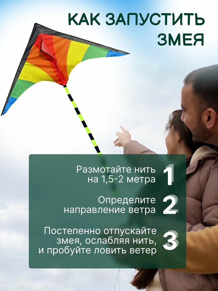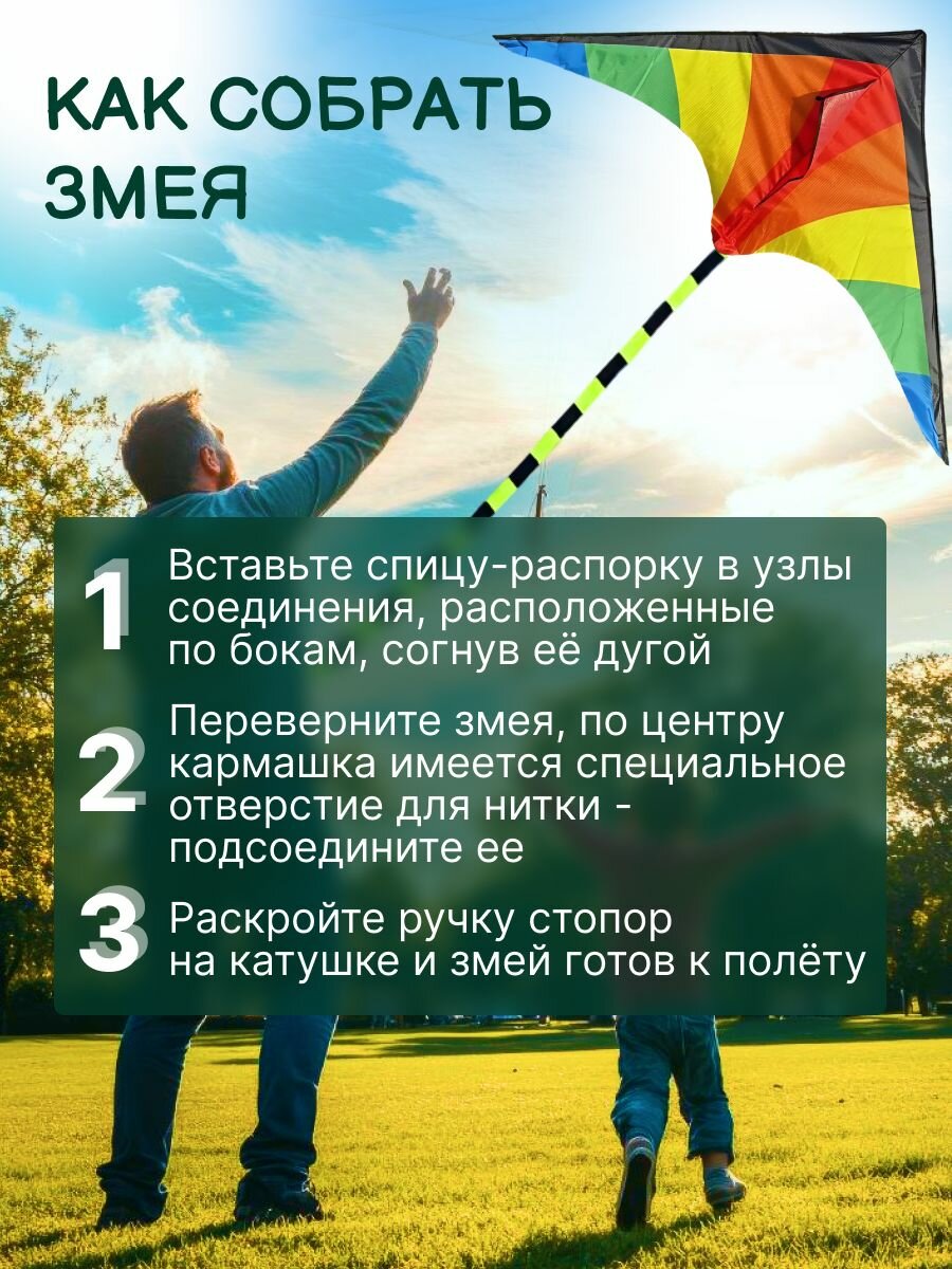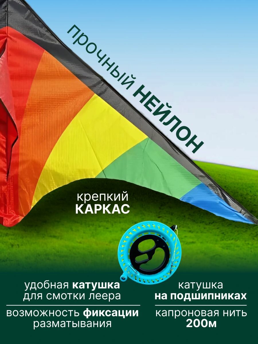 Воздушный змей 2 метра, катушка управления с леером 150 метров, разноцветный интересное: