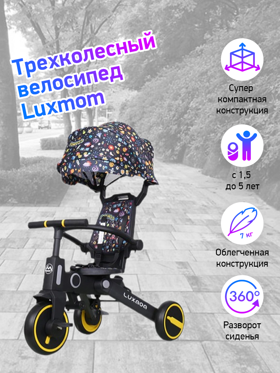 СохранитьТрехколесный велосипед LUXMOM ORIGINAL 368 складной, поворот сидения, желтый интересное: