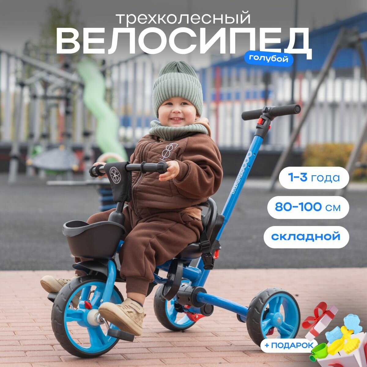 | Комплектация | Трёхколёсный складной велосипед OCTOPUS с Телескопической Родительской Ручкой, Подстаканником, Корзинкой, Подставкой для ног |