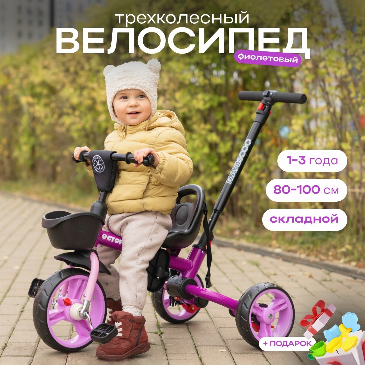 Купить Велосипед трехколесный Maxiscoo Octopus (2023) (Велосипед Maxiscoo (2023) трехколесный "Octopus", с Ручкой Управления, Фиолетовый, MSC-TCL2302VL)