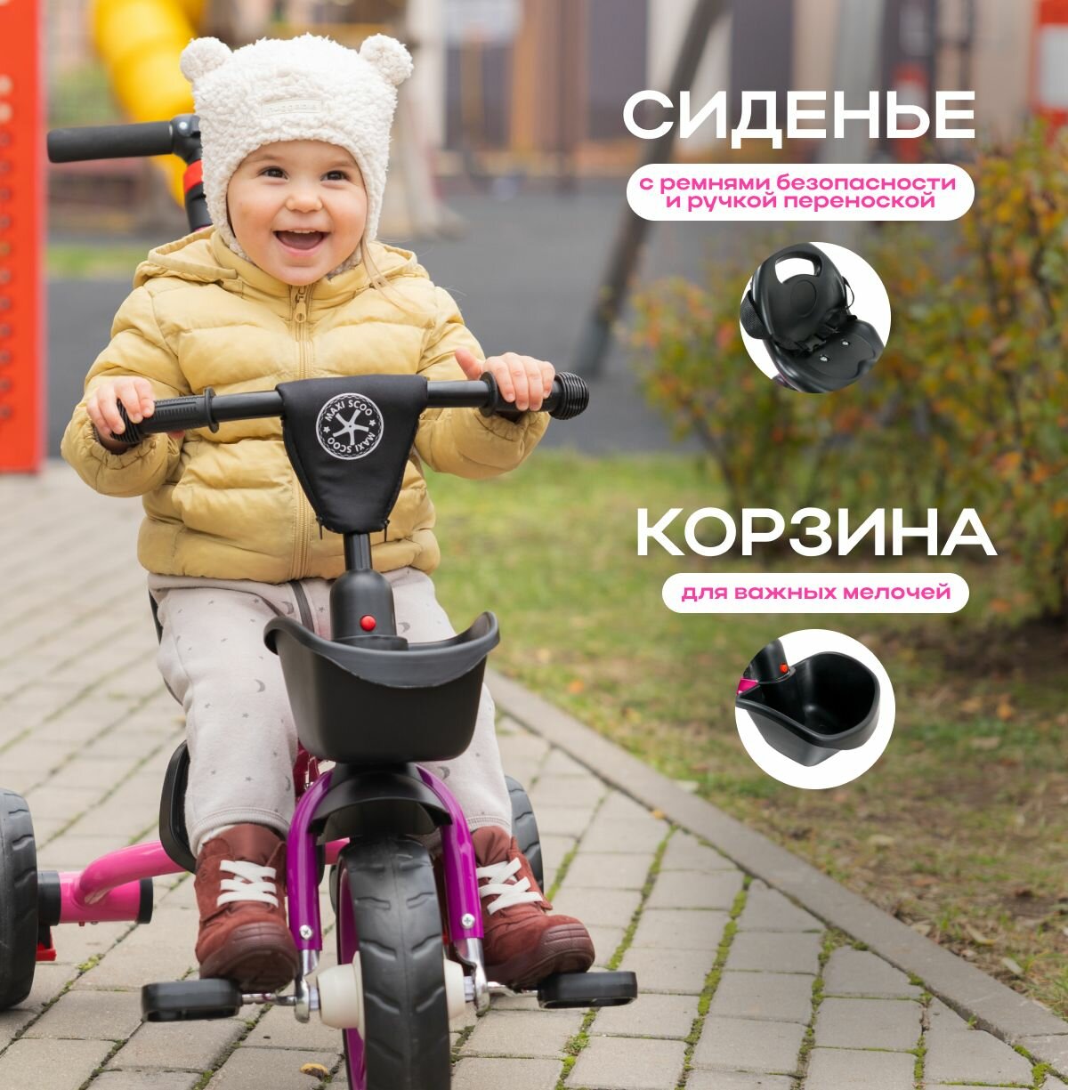 Велосипед трехколесный Maxiscoo Octopus (2023) (Велосипед Maxiscoo (2023) трехколесный "Octopus", с Ручкой Управления, Розовый, MSC-TCL2302PK)