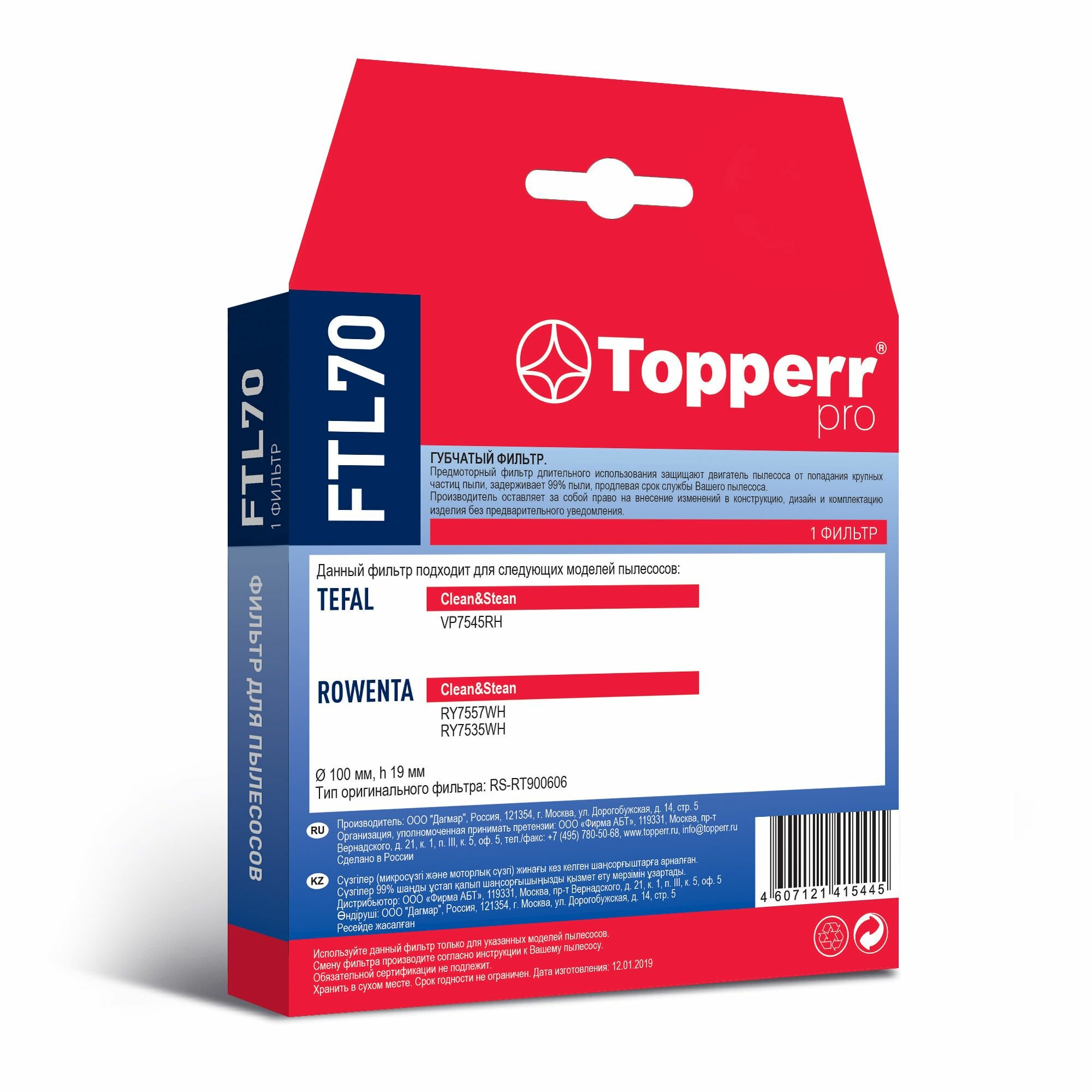 Губчатый фильтр Topperr FTL 70 для пылесосов Tefal