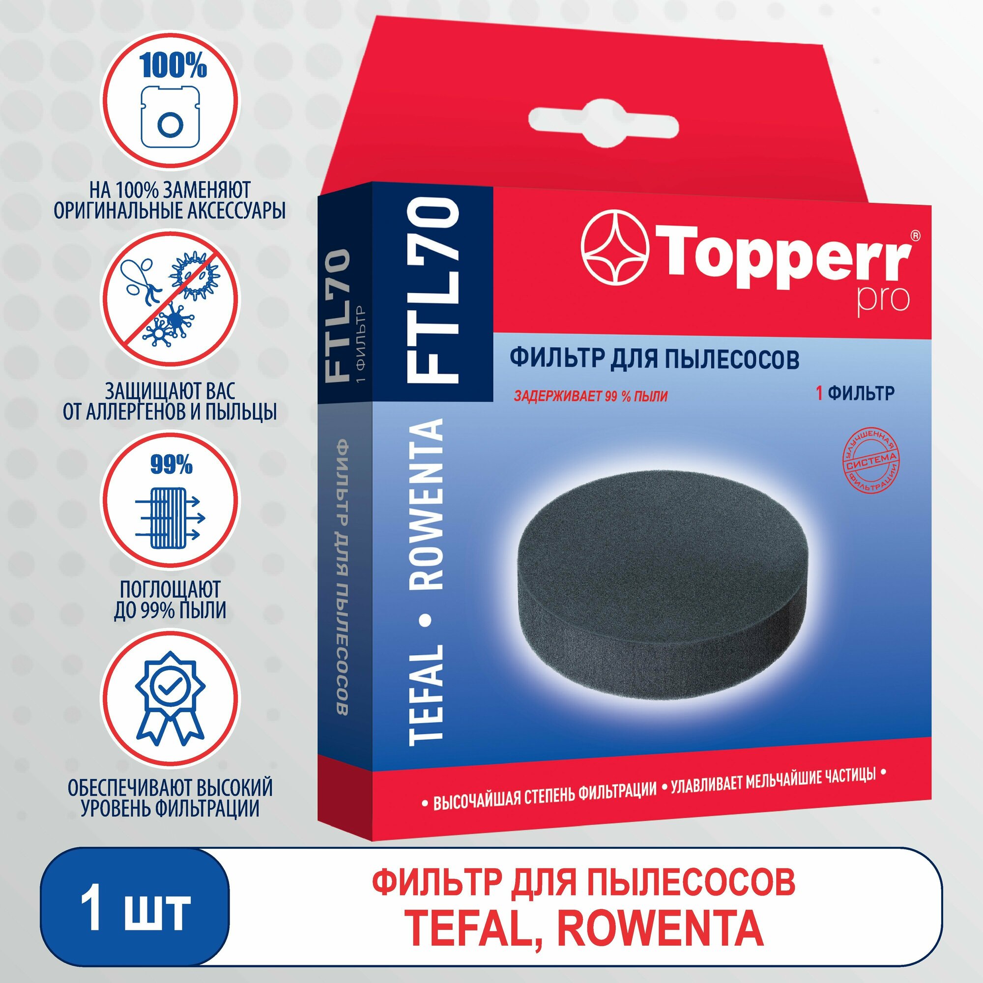 Topperr Фильтр FTL 70, 1 шт, для пылесосов TEFAL, ROWENTA