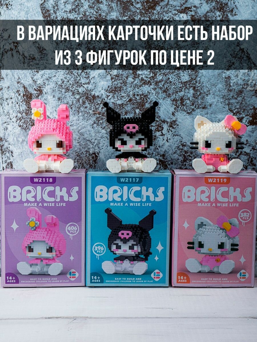 Набор 3D Конструкторов - 3 фигурки - Хеллоу Китти, Май Мелоди, Куроми