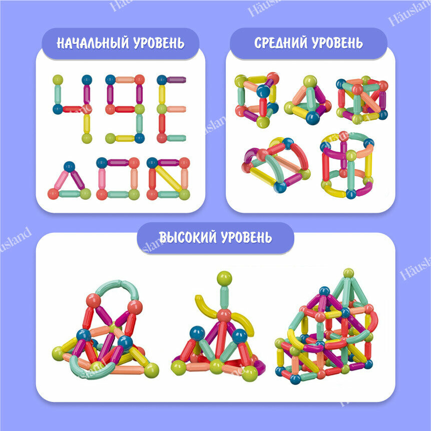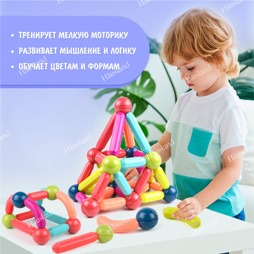 Магнитный конструктор Hausland детский, 3d, 64 детали