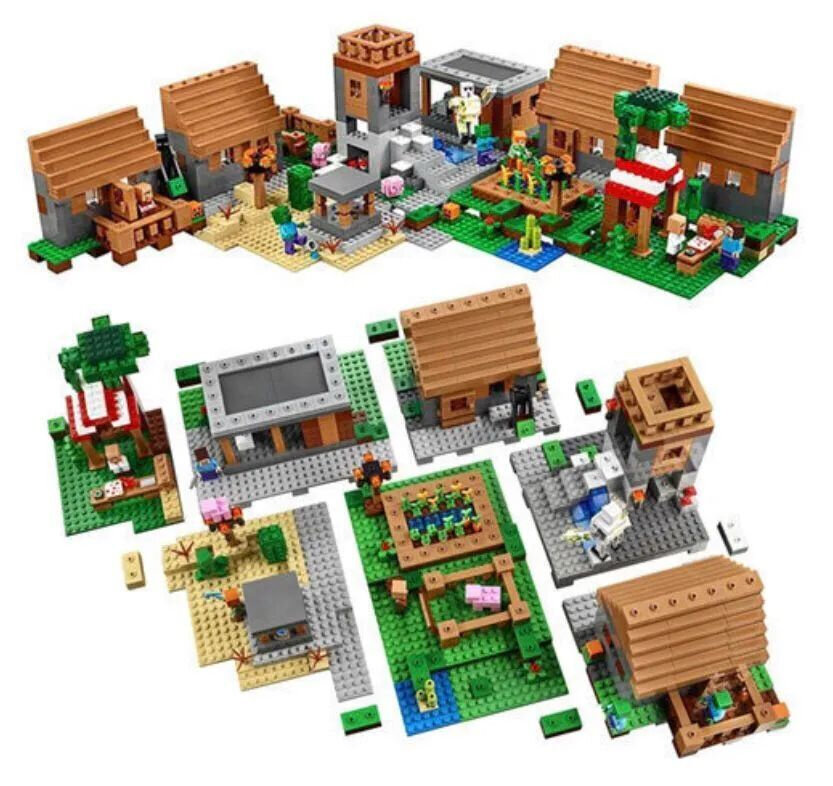 Купить Конструктор пластиковый Майнкрафт Minecraft Большая деревня, 1600 деталей, совместим с лего