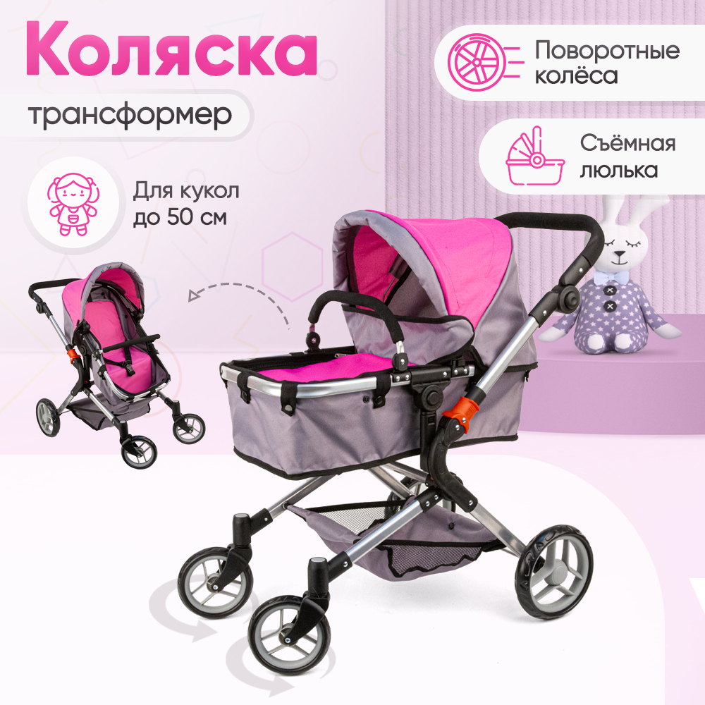 Коляска Трансформер 2в1 для кукол до 50см, с корзиной