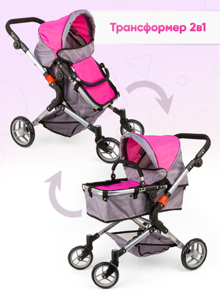 Коляска для кукол до 45см, Трансформер 2в1, с корзиной