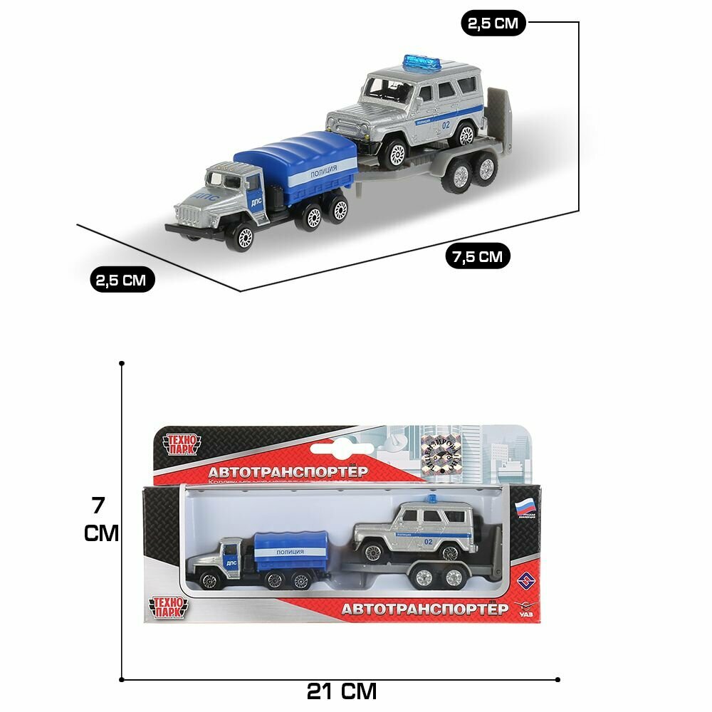 Машинка детская Полицейский Автотранспортер с прицепом и УАЗ, Технопарк, набор, размер машинок 7.5 см, металлическая кабина