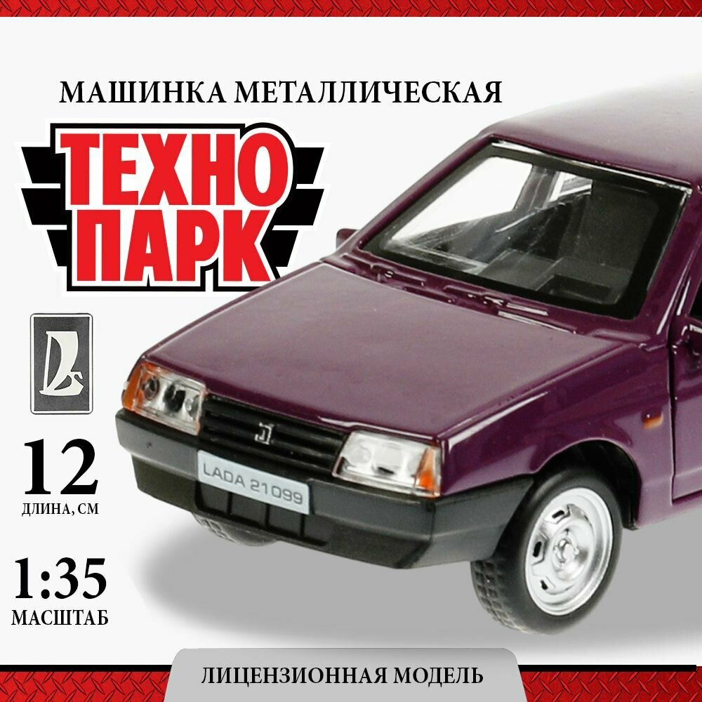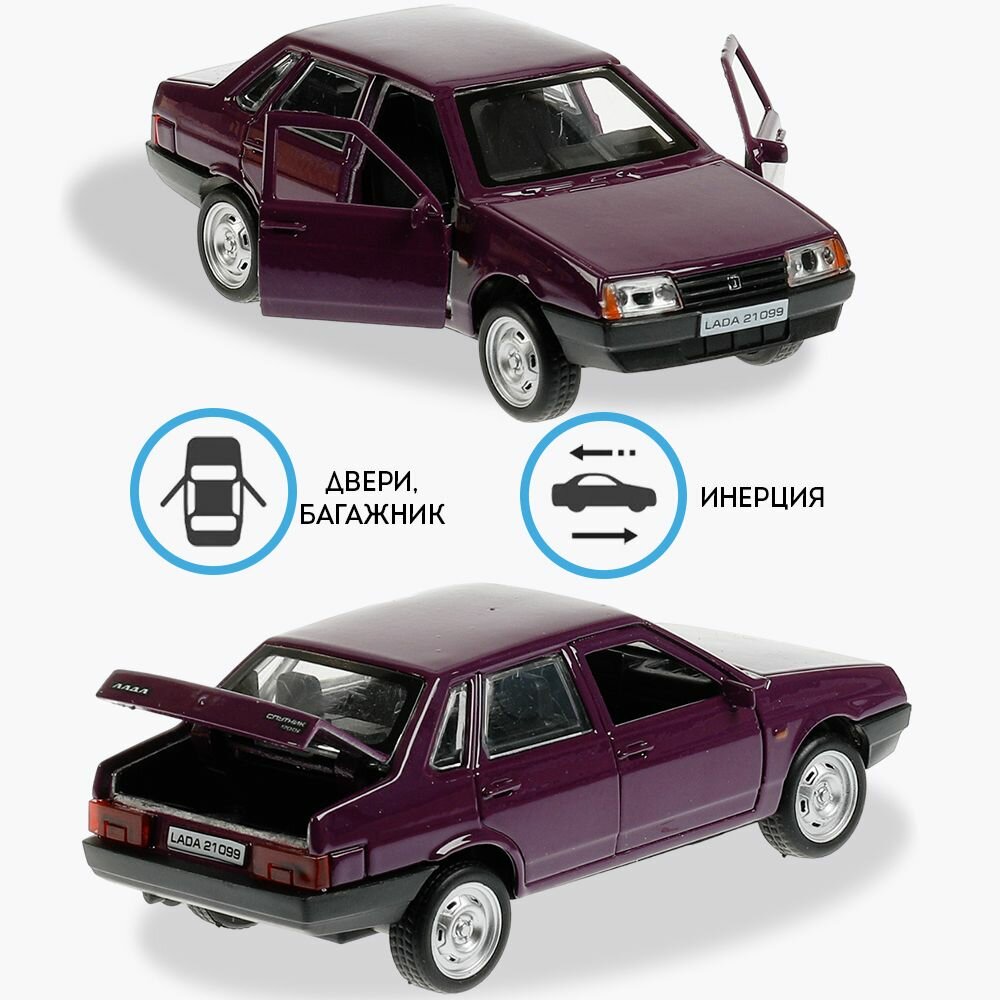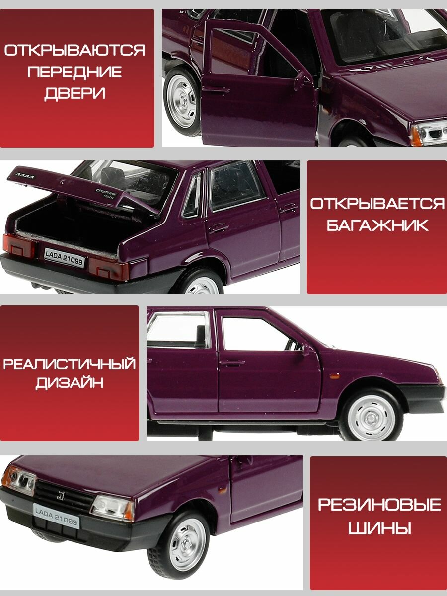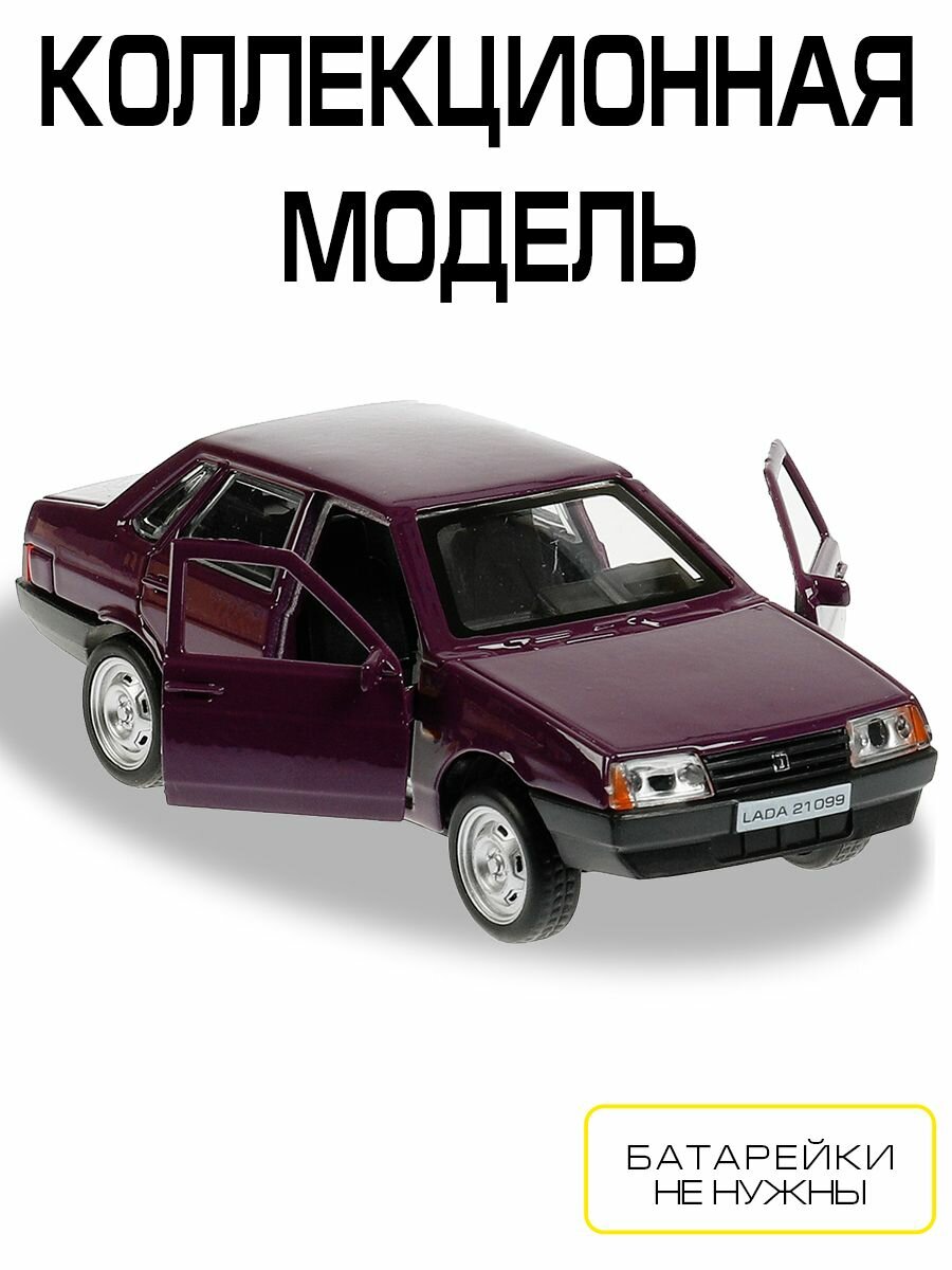 Машинка игрушка детская для мальчика Лада 21099 Технопарк металлическая модель коллекционная инерционная с открывающимися дверьми фиолетовая 12 см