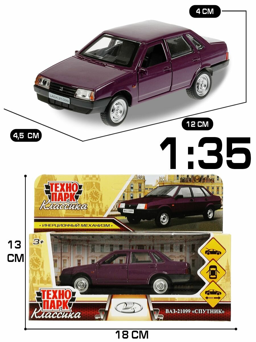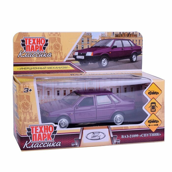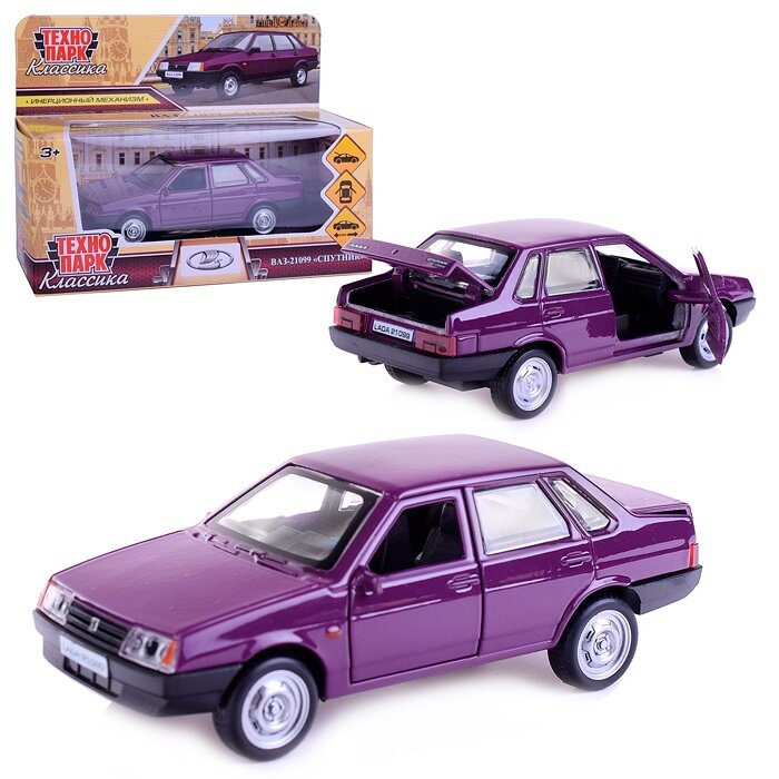 Купить 343356 Машина металл LADA-21099 "спутник" 12 см, двер, баг, инерц, фиолетовый, кор. Технопарк