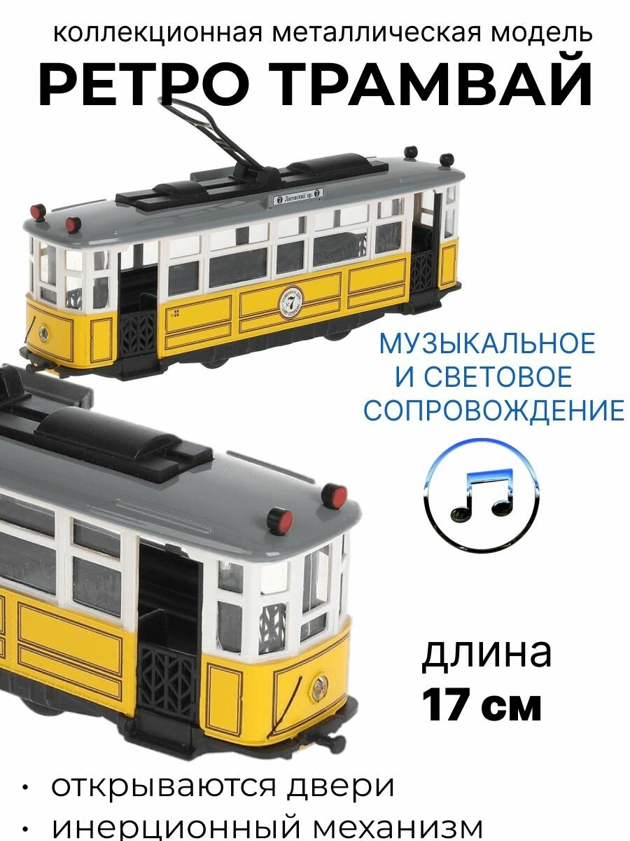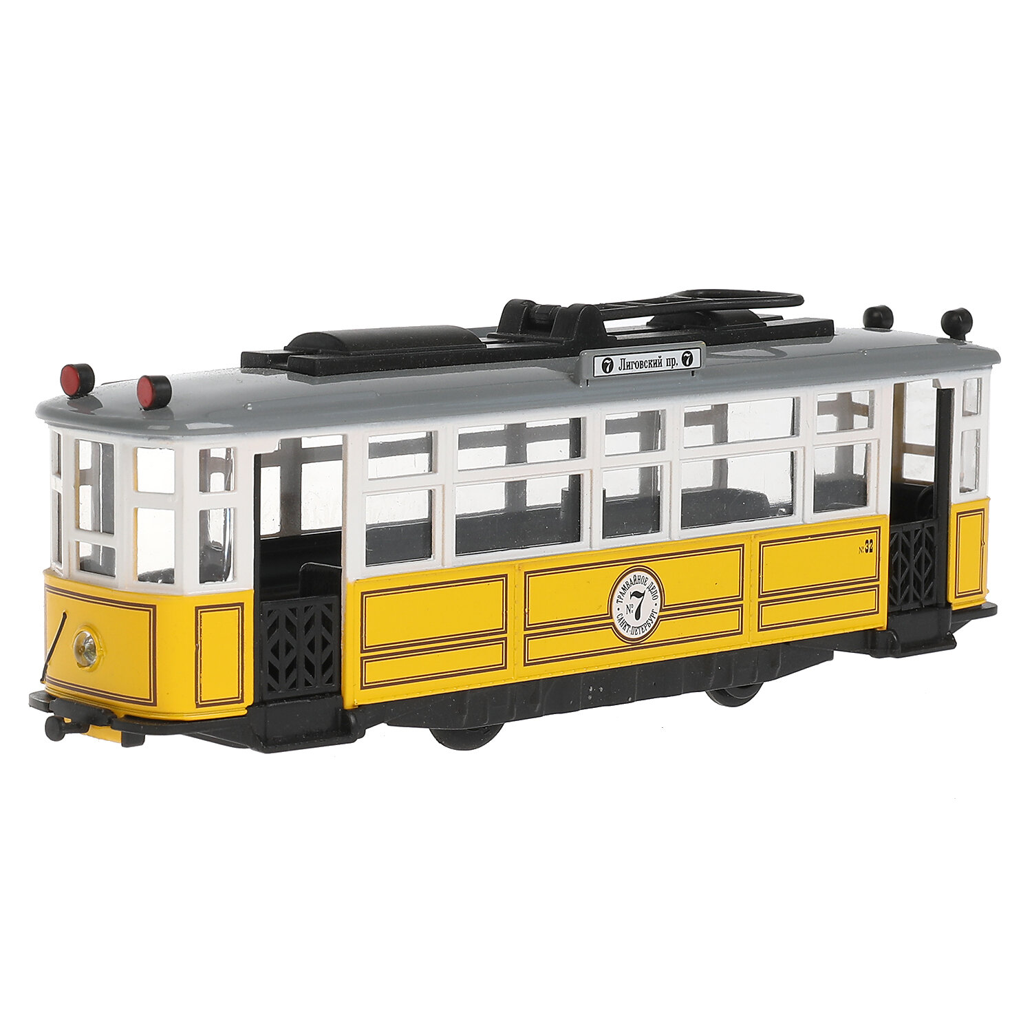 Машина металл свет-звук Трамвай Ретро длина 17 см, инерционный, желтый (TRAMMC1-17SL-YE)