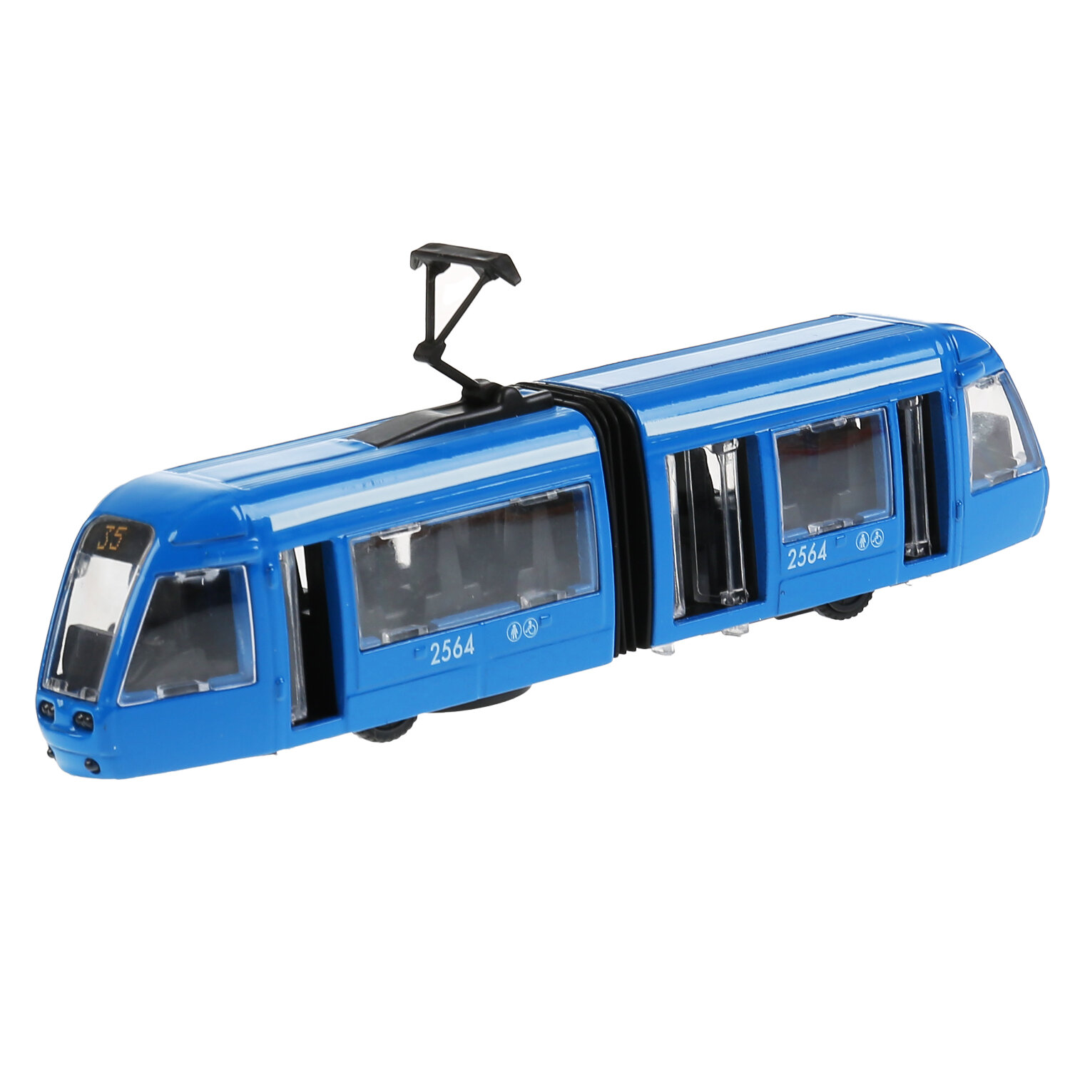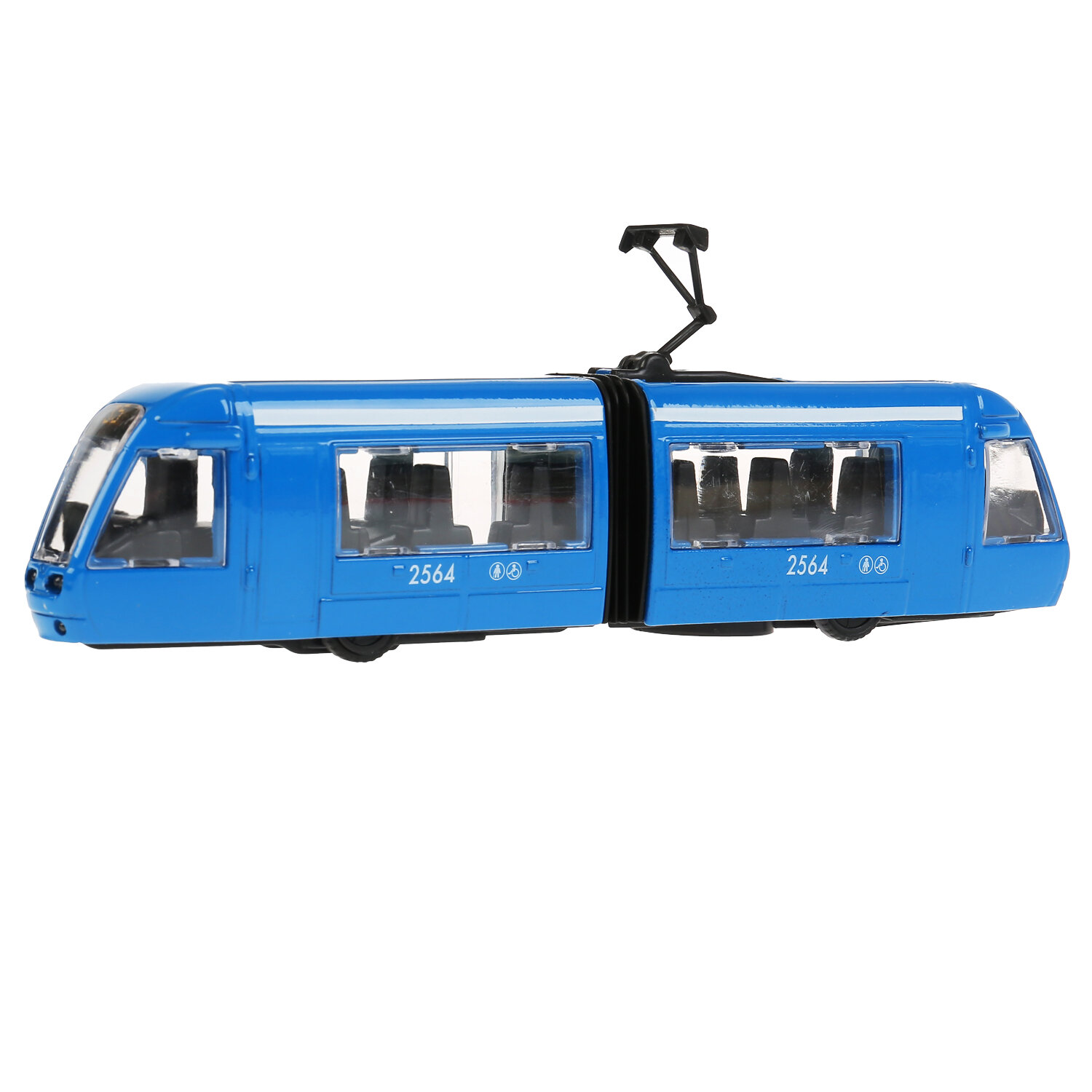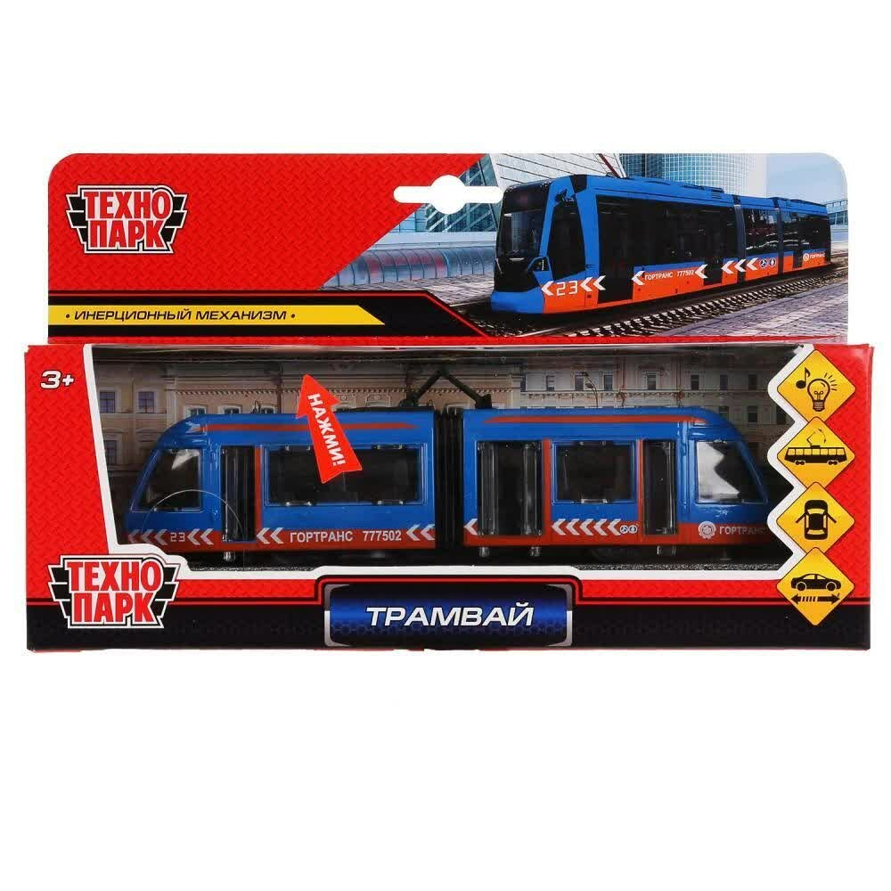 Машинка детская Трамвай с гармошкой 19 см, Технопарк, синяя, металлический корпус, инерция