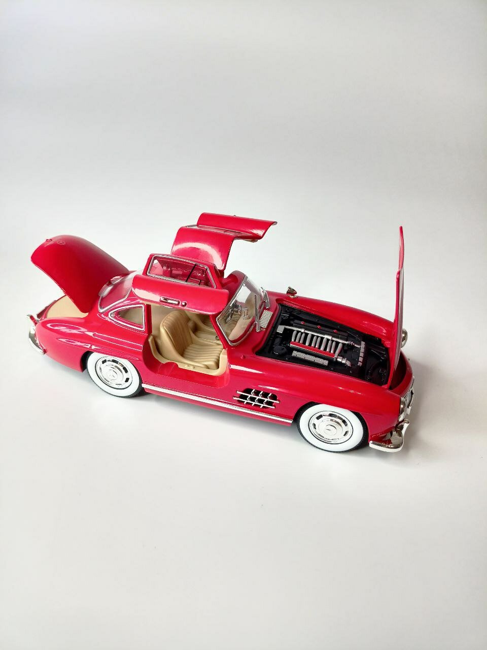 СохранитьКоллекционная машинка игрушка Мерседес 300 SL с дымом ретро-модель масштаб 1:24 красный интересное: