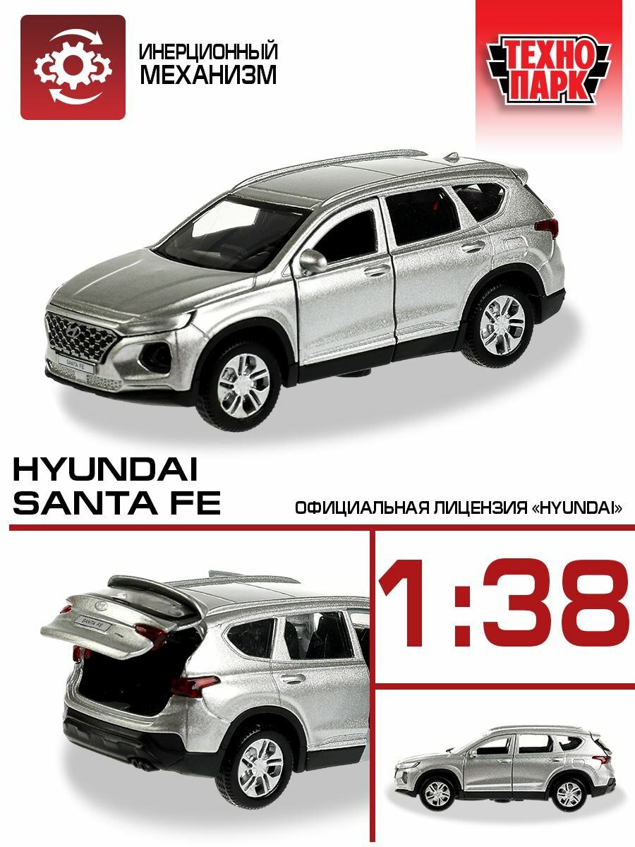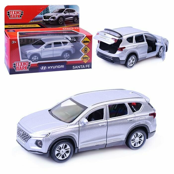 Модель SANTAFE2-12-SR HYUNDAI SANTAFE длина 12 см, двери, багаж, инер, серебр Технопарк в коробке /72/