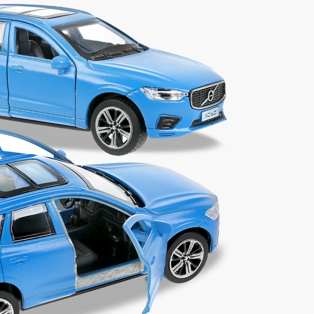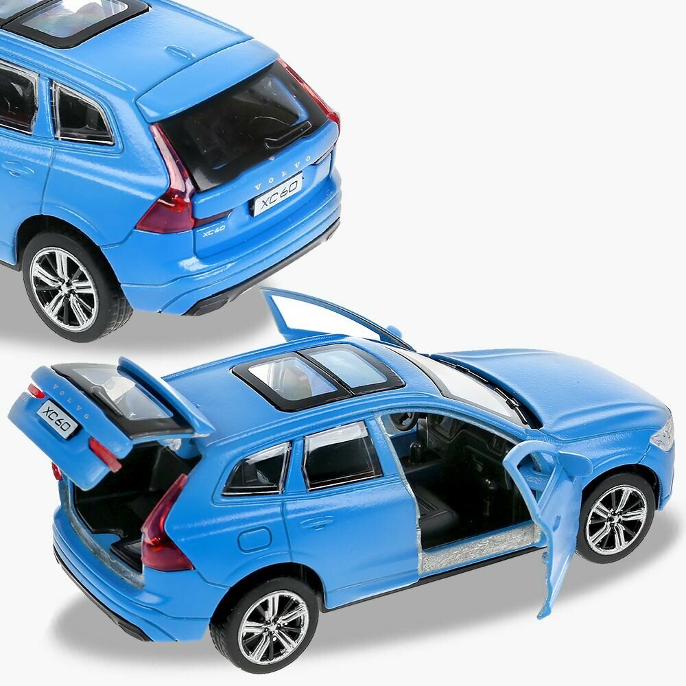 Машинка детская Volvo XC60 12 см, Технопарк, синяя, открываются двери и багажник, металлический корпус