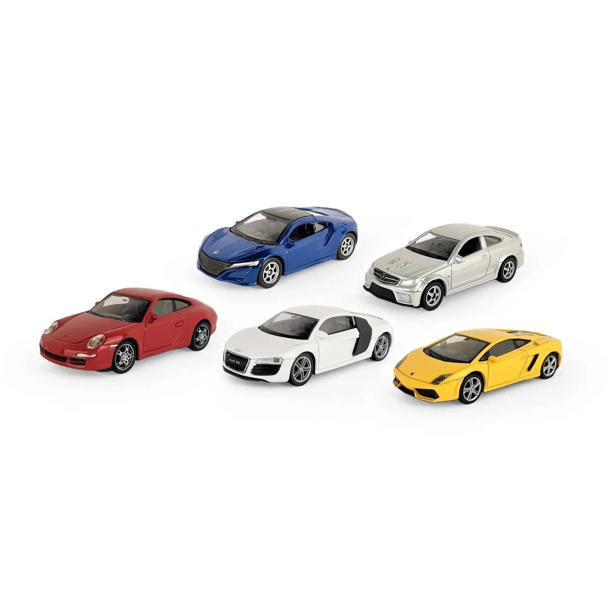Купить Набор машинок металлических WELLY 1:60, Lamborghini Gallardo LP560-4, Porsche 911 Carrera S, Audi R8 V10, Mercedes-Benz C, 5 шт.