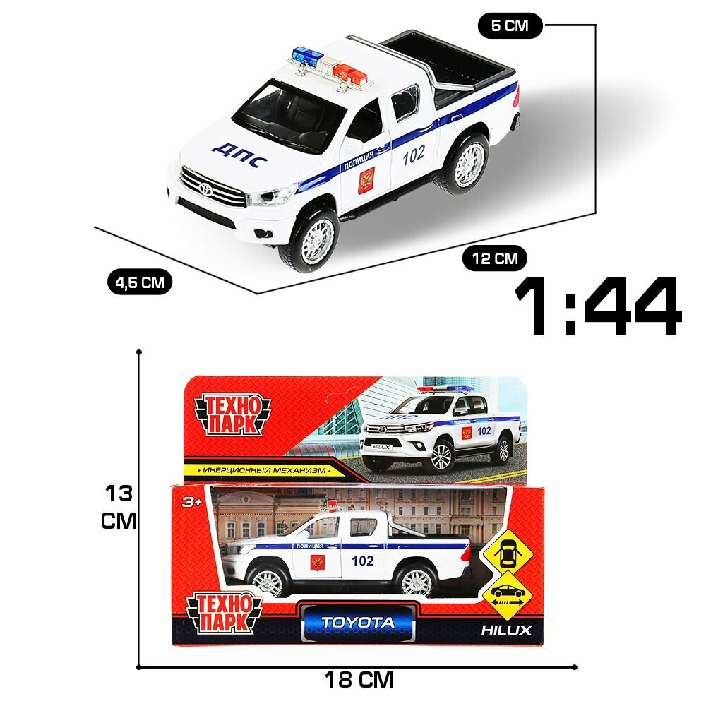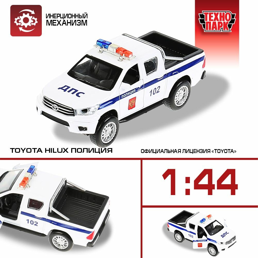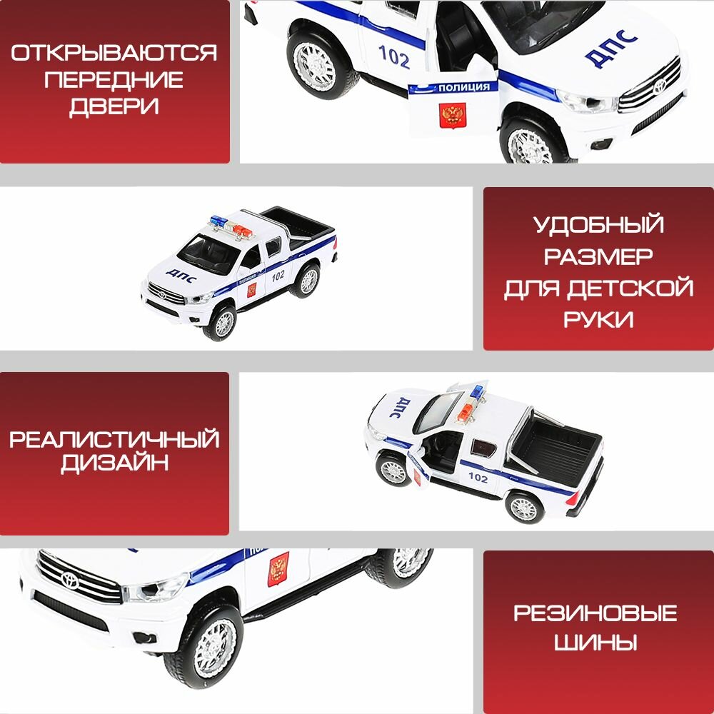 Машинка детская Toyota Hilux Полиция, 12 см, Технопарк, белая, открываются двери, металличсекий корпус