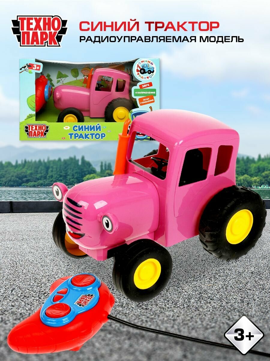 Купить Машинка радиоуправляемая синий трактор 20 см звуковые эффекты Цвет Розовый технопарк BLUTRA-20RCS-PK