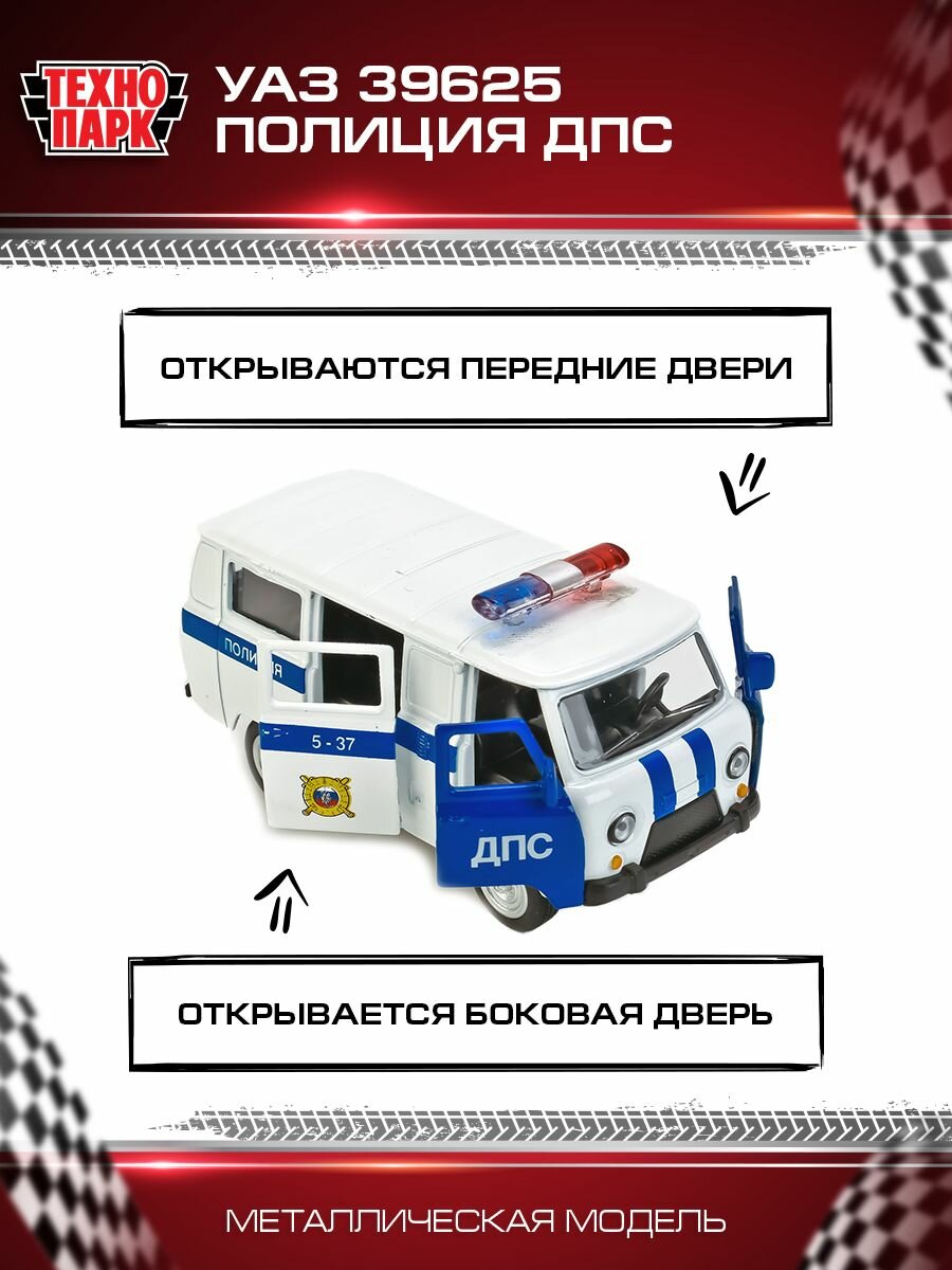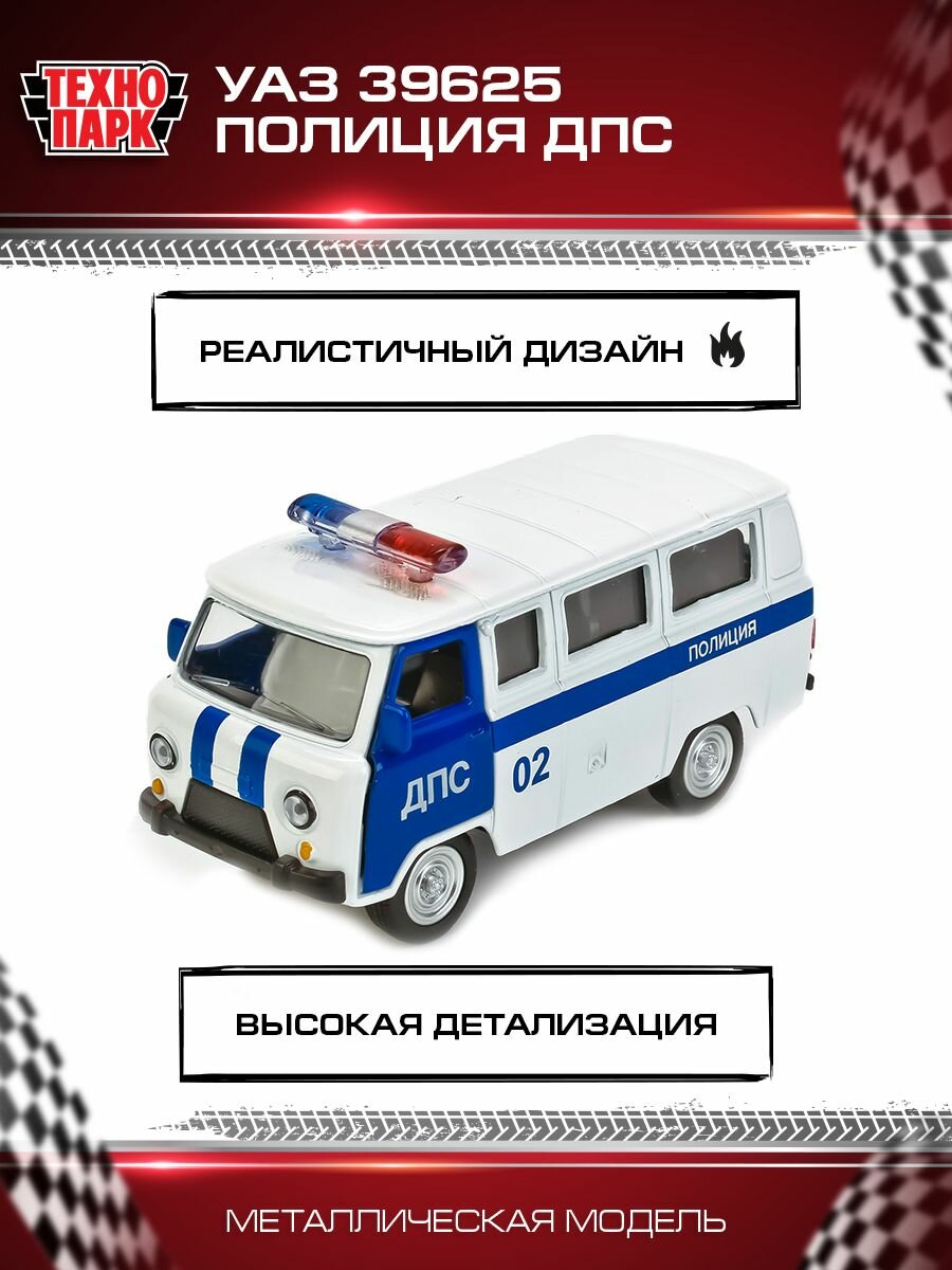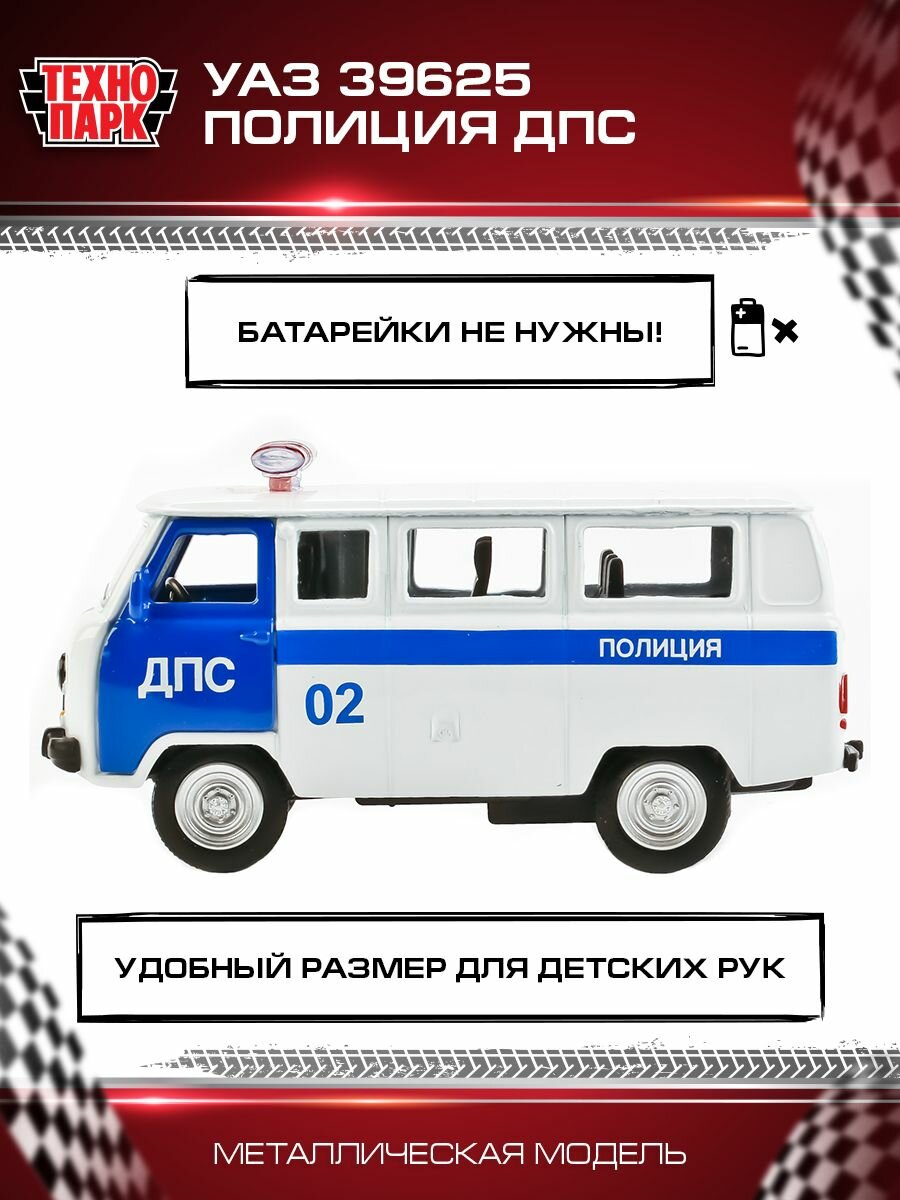 | Дополнительная информация | Машинка игрушка детская для мальчика УАЗ 39625 Полиция ДПС Технопарк детская модель металлическая коллекционная инерционная |