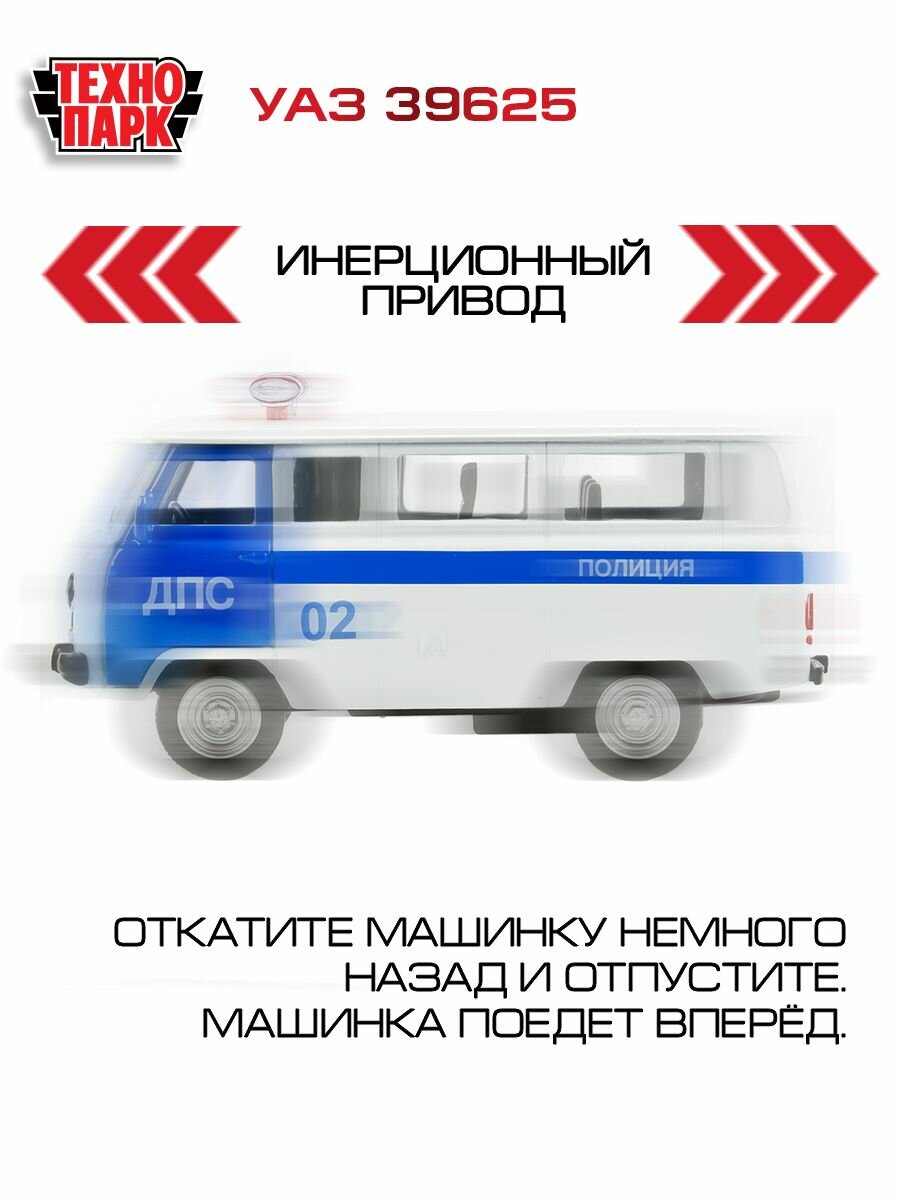 Купить Машинка игрушка детская для мальчика УАЗ 39625 Полиция ДПС Технопарк детская модель металлическая коллекционная инерционная