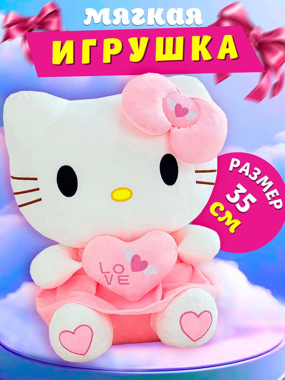 Купить Мягкая игрушка hello kitty кошка для детей Хелло Китти 35 см