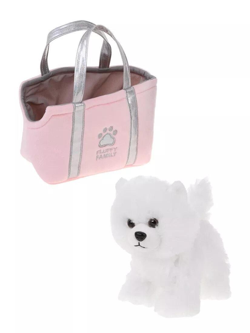 Мягкая игрушка Fluffy Family в сумочке Щенок Шпиц, искусственный мех, 19 см, белый