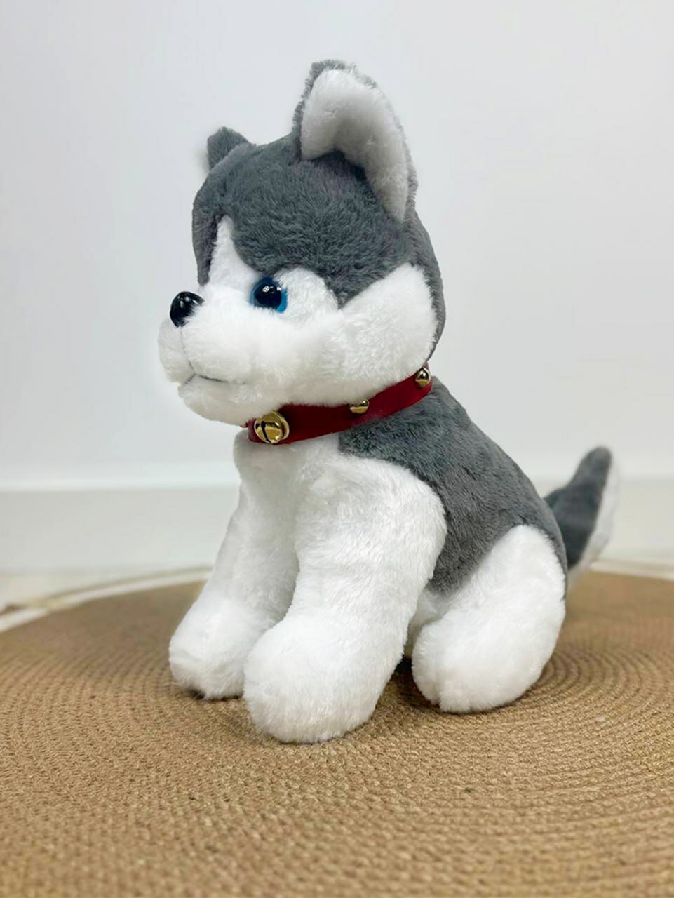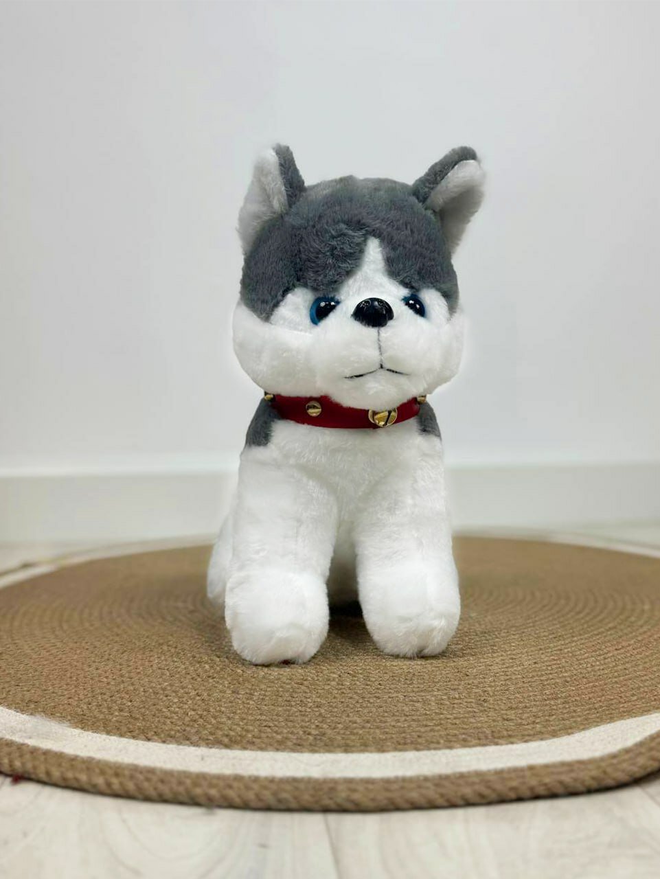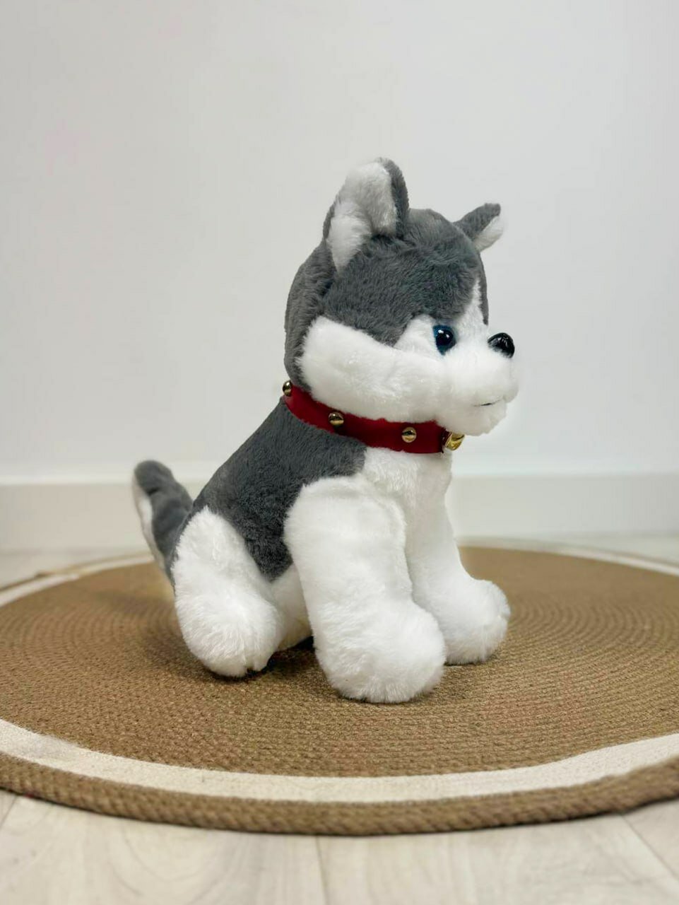 Купить Мягкая игрушка Собачка серая Хаски с ошейником 32 см