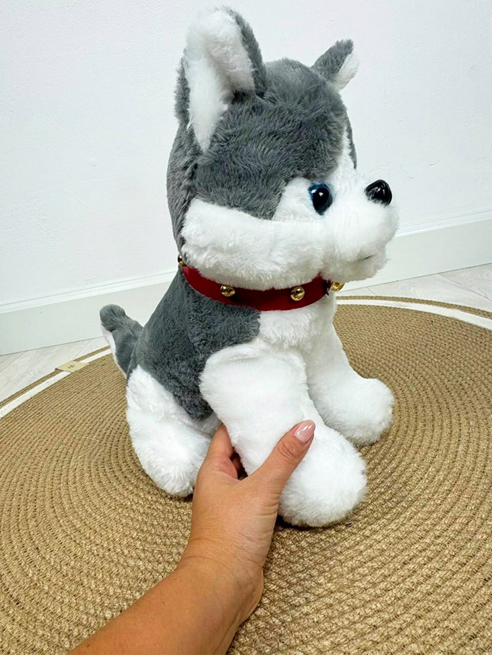 Мягкая игрушка Собачка серая Хаски с ошейником 32 см интересное: