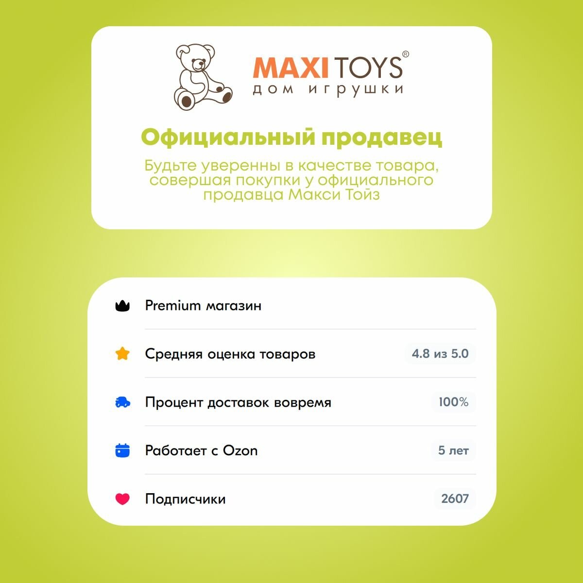 | Дополнительная информация | Оригинальность игрушки и ее качество – вот главные преимущества, которые делают товар конкурентоспособным на рынке. Все это достигается благодаря слаженной и дружной работе команды Maxitoys. Мы стремимся приукрасить этот мир, внести еще больше красок и эмоций! Ведь каждая наша игрушка – это еще одна улыбка на лице ребенка, еще один оригинальный элемент для интерьера, и еще один замечательный подарок для любимых и близких! |