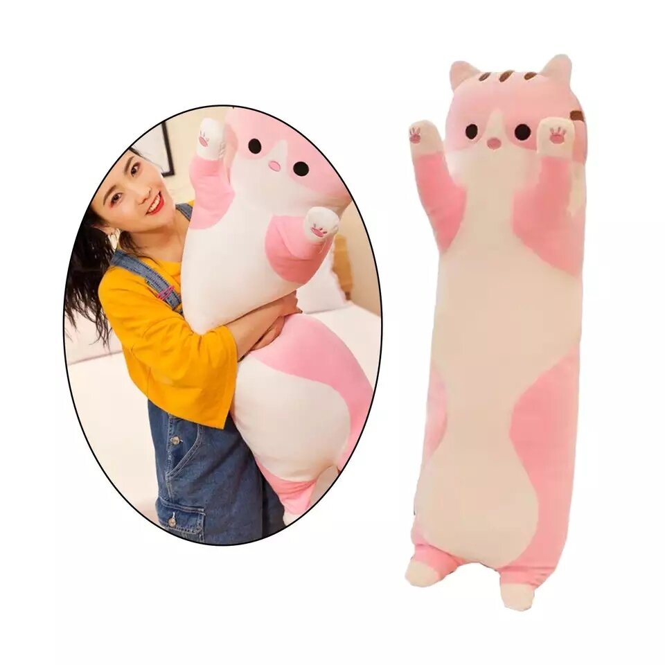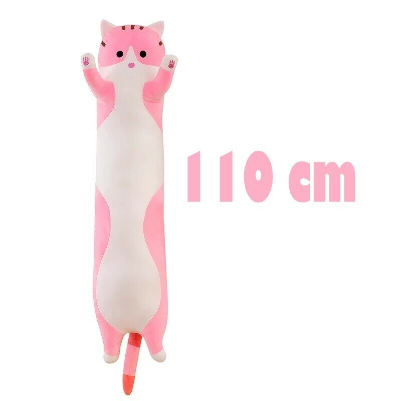 Длинный кот 90см / Плюшевая игрушка Кот-батон, розовый