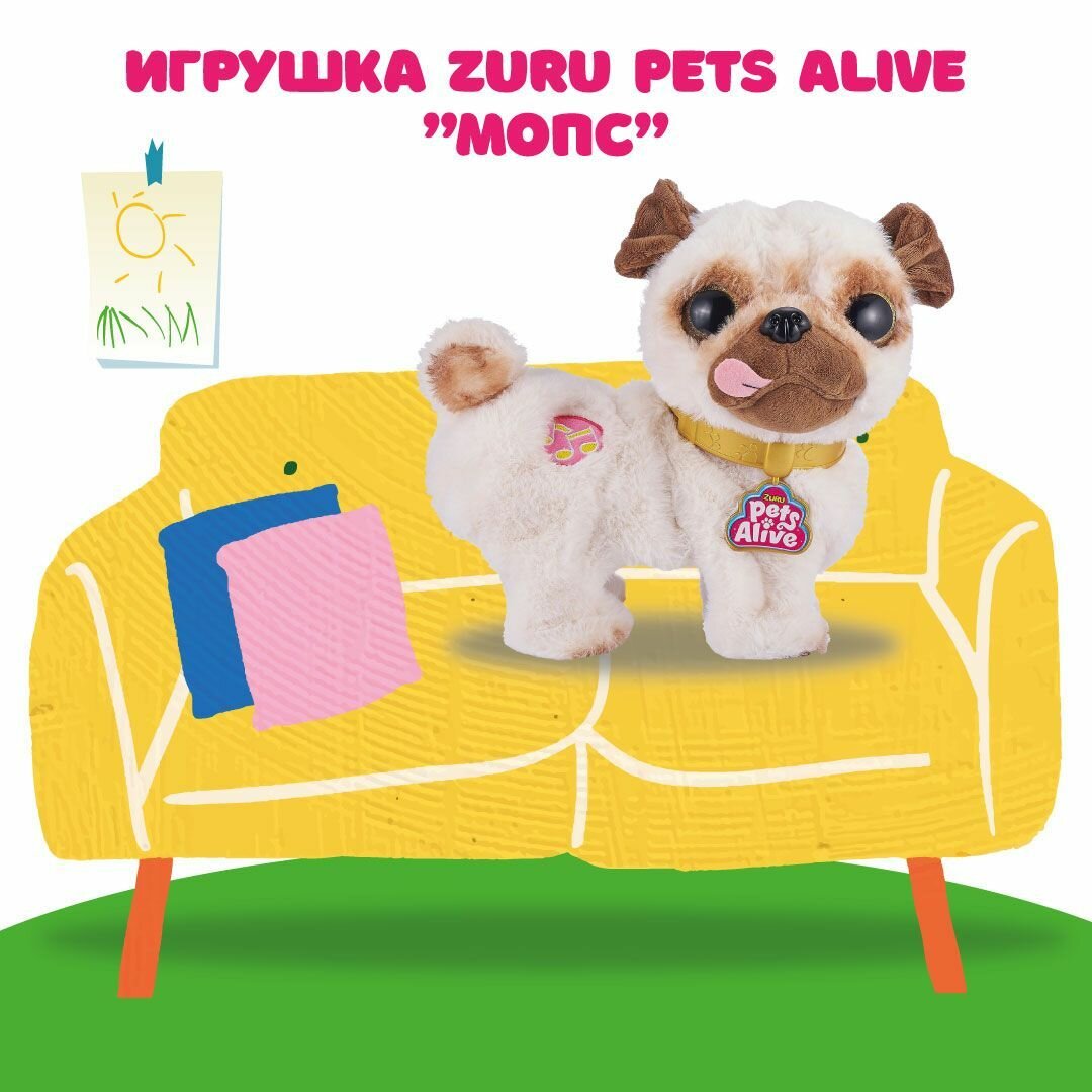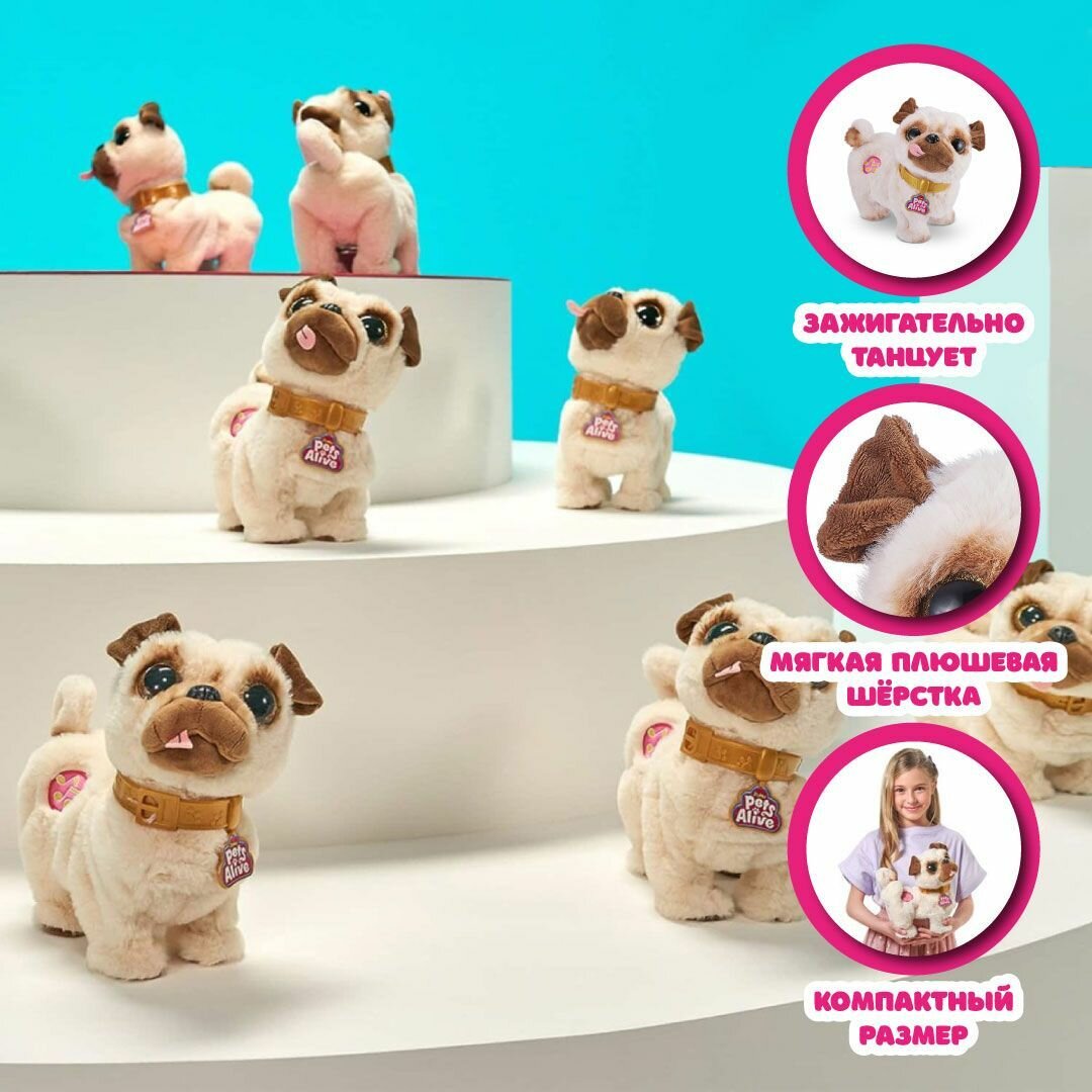 СохранитьИнтерактивная мягкая игрушка ZURU Pets Alive танцующий Мопс, 9521 интересное:
