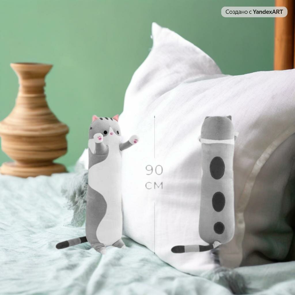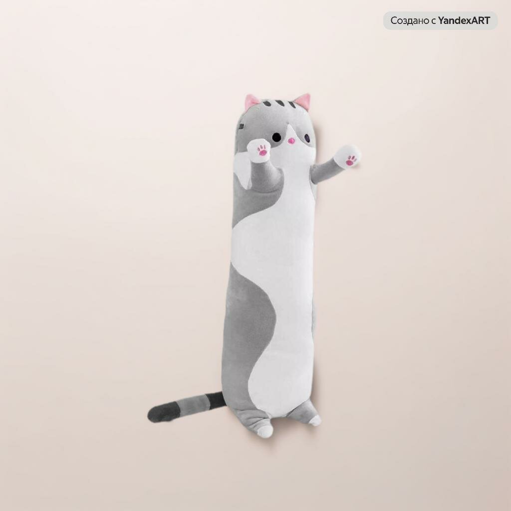 СохранитьМягкая игрушка Кот-батон 90 см / подушка обнимашка / антистресс, серый интересное: