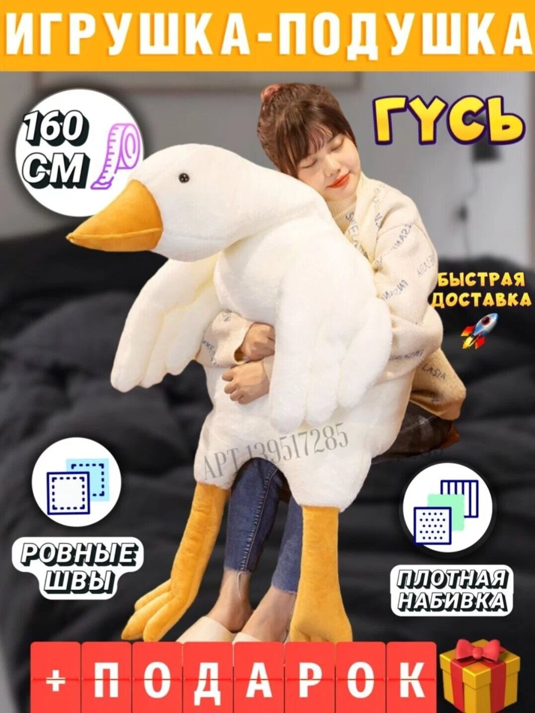 Мягкая игрушка плюшевый гусь 130 см
