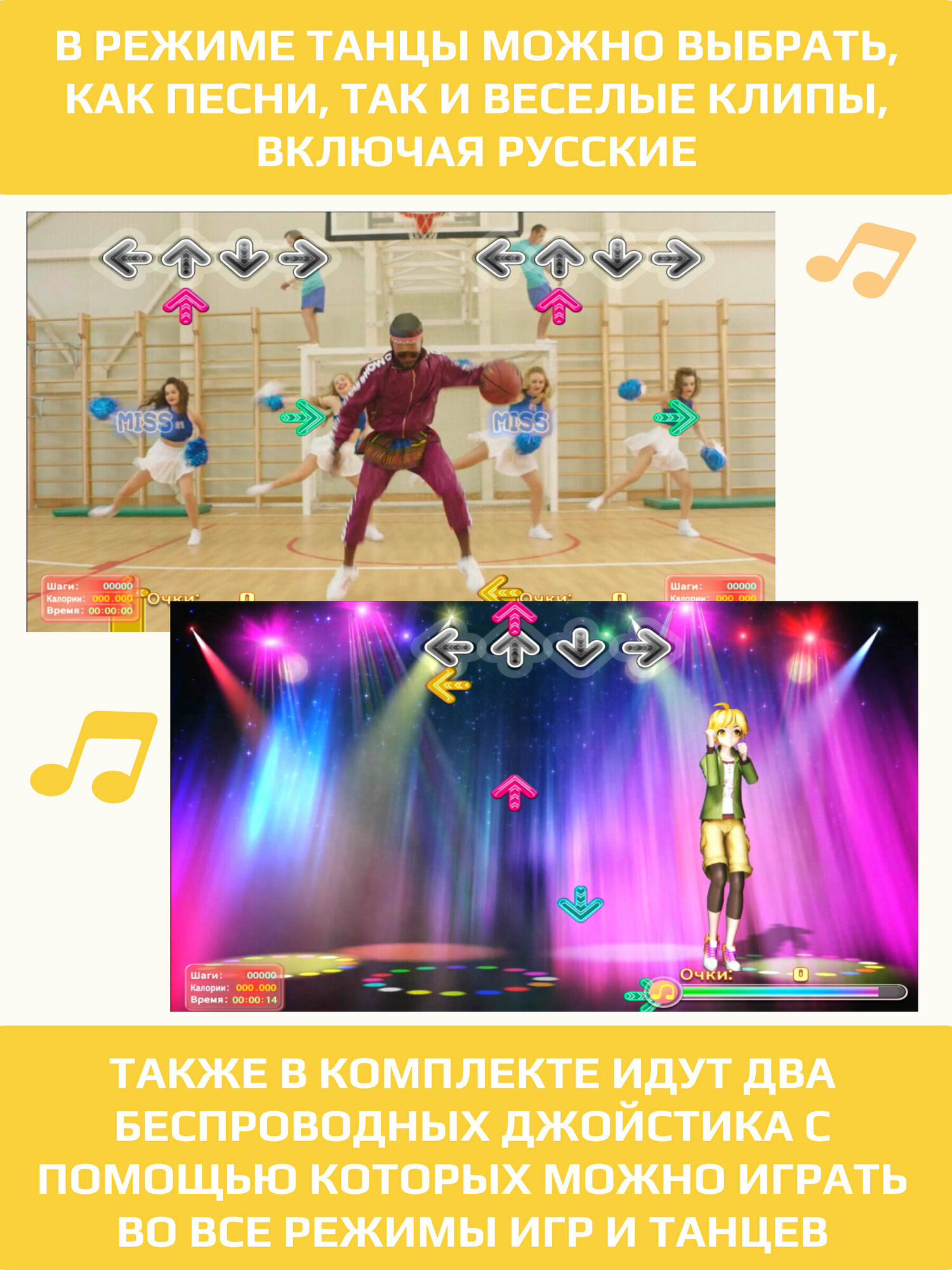 Купить Танцевально-игровой коврик для двоих на русском языке с геймпадами беспроводной + аэробика