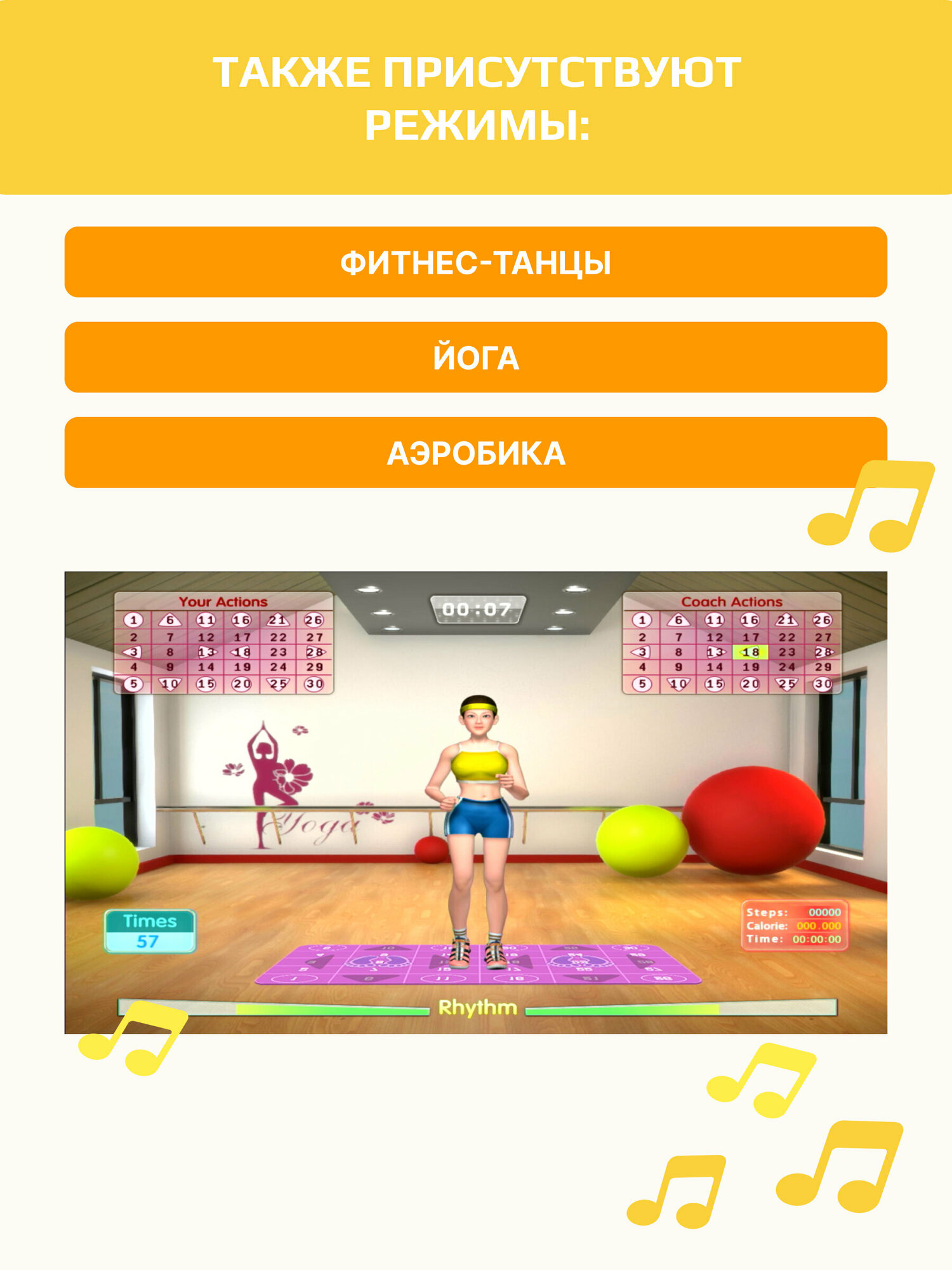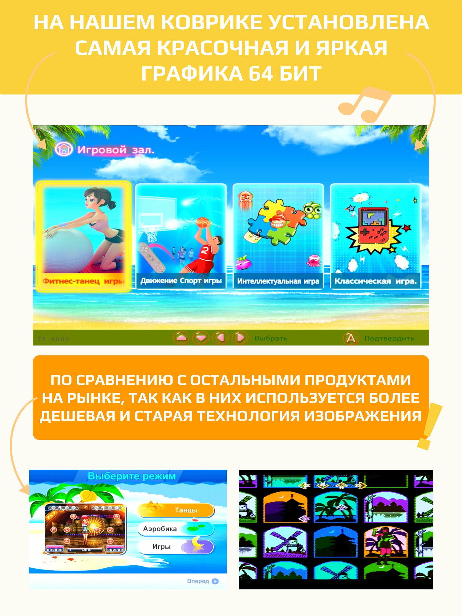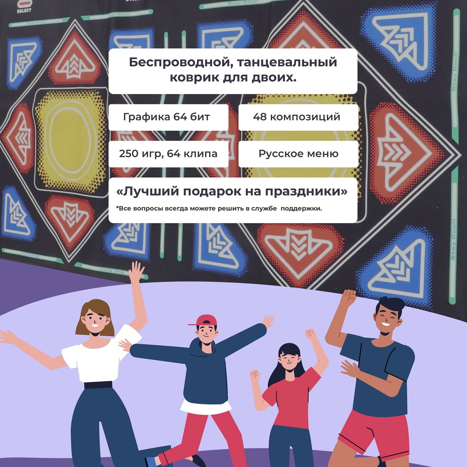 Танцевально-игровой коврик для двоих на русском языке с геймпадами беспроводной + аэробика интересное: