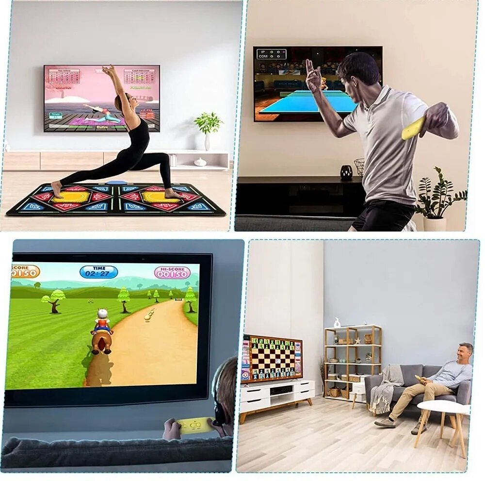 | Комплектация | Двойной танцевальный коврик (163 на 93 см) HDMI ресивер для ТВ и ПК с HDMI кабелем для ТВ, USB кабелем для ПК 2 беспроводных джойстика для игр Батарейки для коврика и джойстиков |